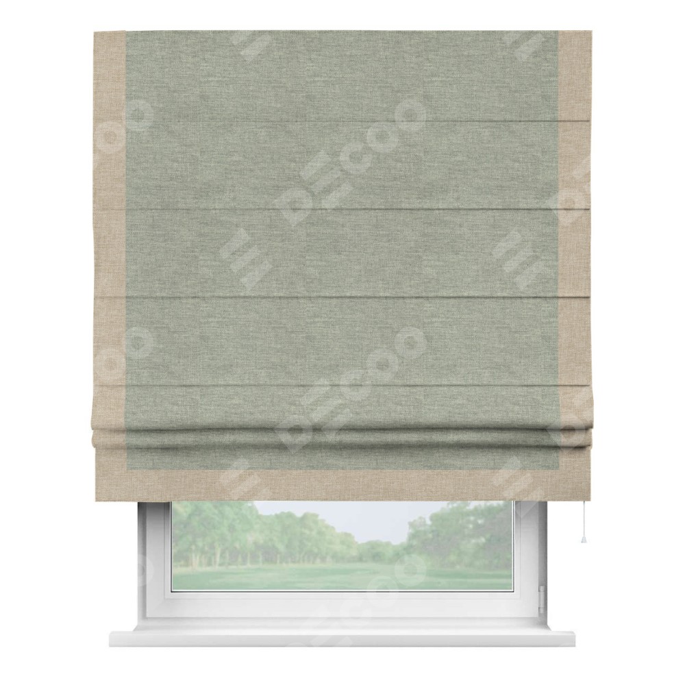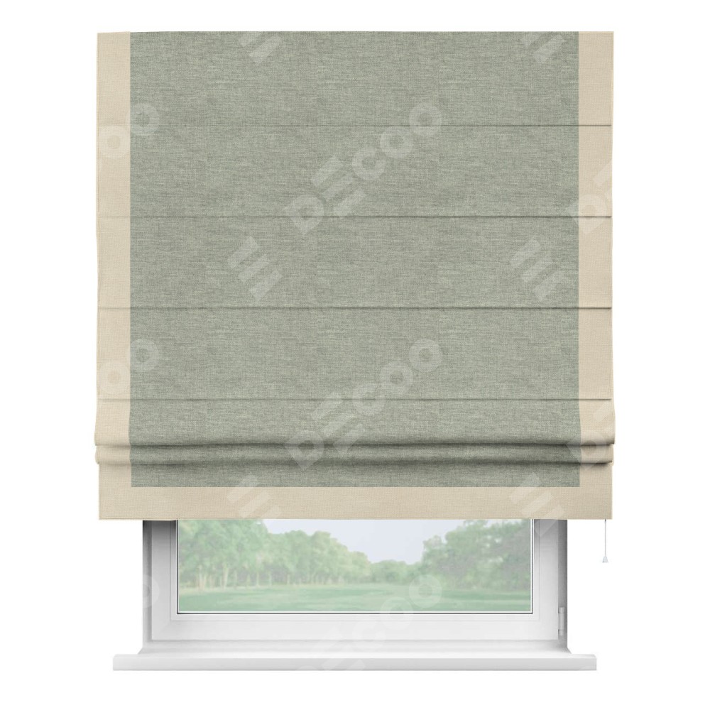 Римская штора производителя «Cortin», используется для проёма, пошита из ткани лён кашемир серый new, артикул 21618. Отделка шторы кантом «Виктория», ткань для канта используется из льна разной расцветки на выбор. Имеет универсальный механизм и подходит для монтажа: на потолок, на стену и в нишу.