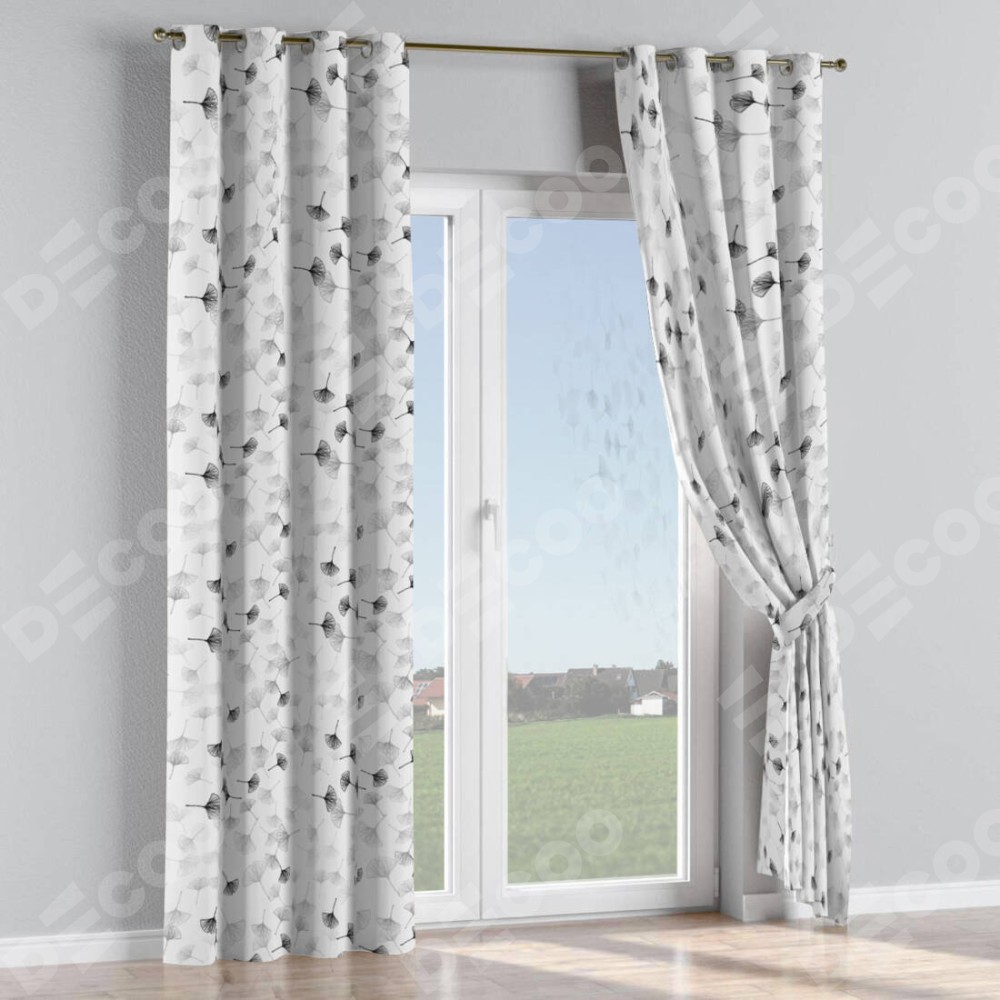 Комплект прямых штор, от производителя «Cortin», пошиты из ткани блэкаут с нанесением сублимационной печати «Дымчатые листочки». Данная модель пошита на люверсах, комплектуется на выбор круглым карнизом и подходит для монтажа на стену или потолок. Прямые шторы на люверсах шьются по стандарту с коэффициентом 1/2 (на 100 см. ширины проёма 200 см. ширины ткани), отличительным преимуществом данной модели является простой способ монтажа. Достаточно повесить ее на трубу и штора готова!