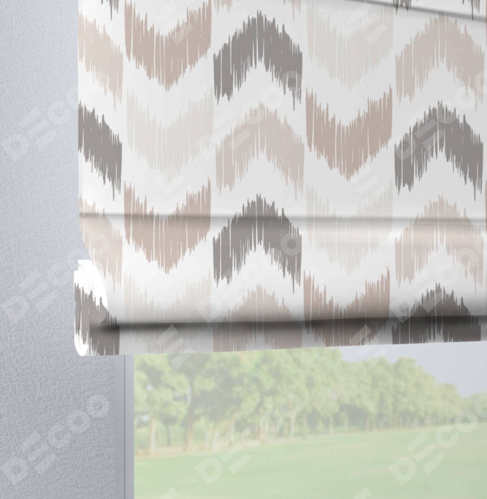 Римская штора производителя «Cortin», используется для проёма, пошита из ткани блэкаут с нанесением сублимационной печати «Икат стрелки». Данная модель пошита на петлях, комплектуется на выбор круглым карнизом и подходит для монтажа на стену. Римская штора на петлях имеет простую систему регулировки высоты, отличительным преимуществом данной модели является простой способ монтажа. Достаточно повесить ее на трубу и штора готова!