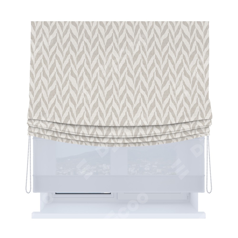 Римская штора день-ночь производителя «Cortin», используется для проёма, пошита из двух полотен, с лицевой блэкаут с нанесением сублимационной печати «Песочный зебрано», вторая ткань тюль (по стандарту комплектуется тюль белого цвета артикул V-01). Имеет универсальный механизм и подходит для монтажа: на потолок, на стену и в нишу. Удобное управление каждой шторой отдельно.