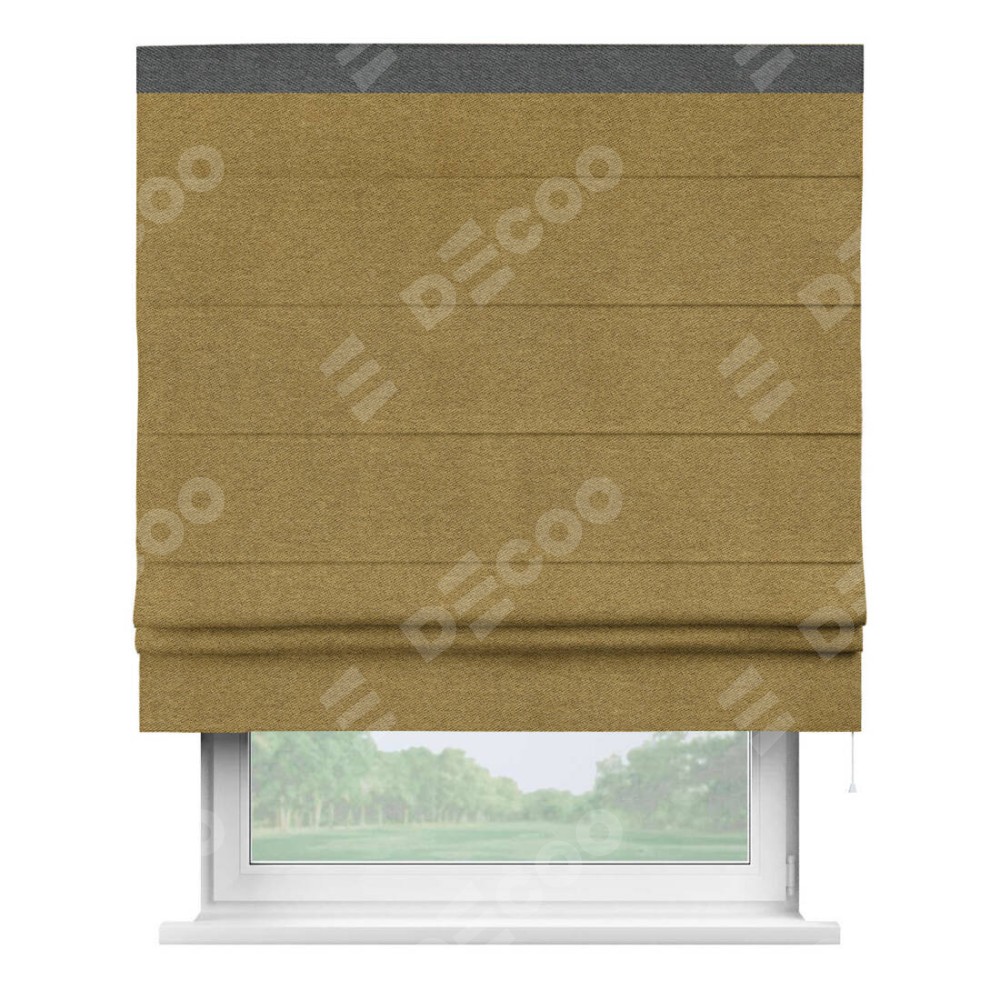 Римская штора производителя «Cortin», используется для проёма, пошита из ткани твид блэкаут горчица, артикул 91237. Отделка шторы кантом «Кинг», ткань для канта используется из твида разной расцветки на выбор. Имеет универсальный механизм и подходит для монтажа: на потолок, на стену и в нишу.