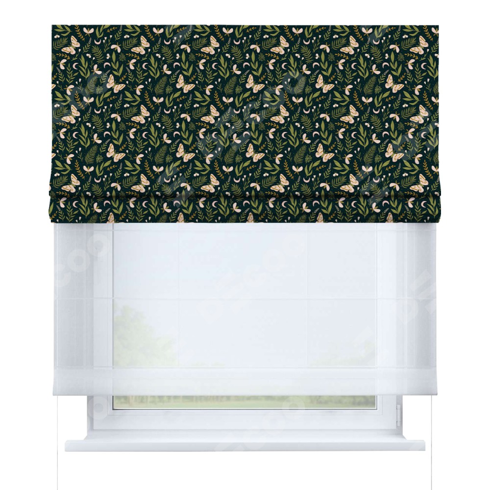 Двойная римская штора «День-ночь» от производителя Cortin предназначена для использования в проёмах. Эта штора уникальна тем, что состоит из двух полотен. На лицевой стороне находится блэкаут с нанесением сублимационной печати «Летняя ночь», обеспечивающий эффективное затемнение. В комплект также входит вторая ткань — легкий белый тюль (артикул: V-01), который добавляет изящества и легкости оформлению окна. Кроме того, доступны и другие разновидности ткани тюль, выбор которых доступен по ссылке .