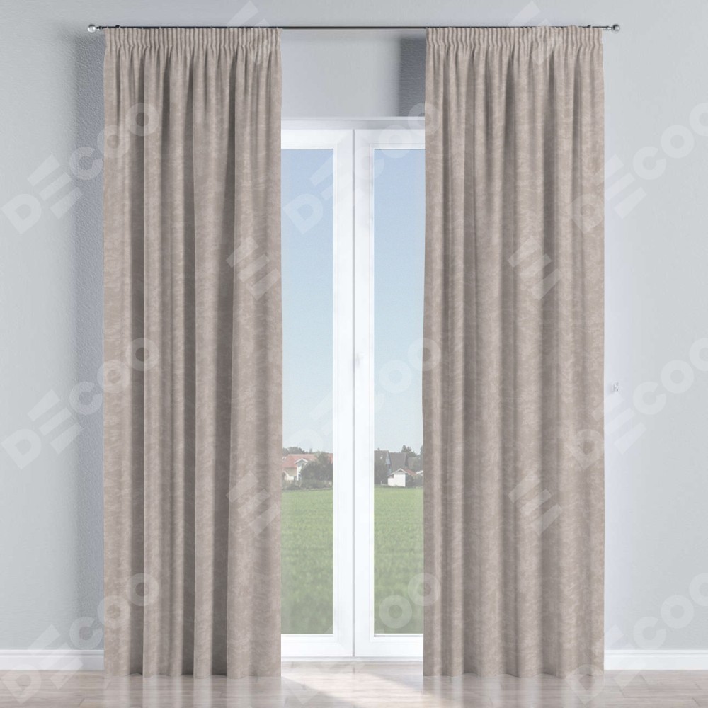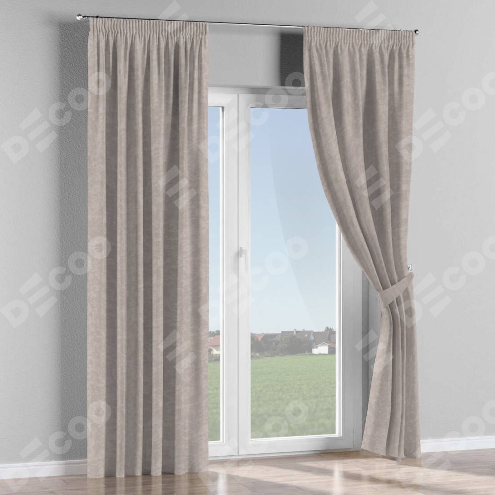 Комплект прямых штор, от производителя «Cortin», пошиты из ткани софт мрамор пудровый, артикул ткани 93578. С изнаночной стороны в верхней части штор пристрачивается шторная лента с декоративными складками «Карандаш». Для создания элегантных складок прямые шторы шьются по стандарту с коэффициентом 1:2 (на 100 см. ширины проёма 200 см. ширины ткани).