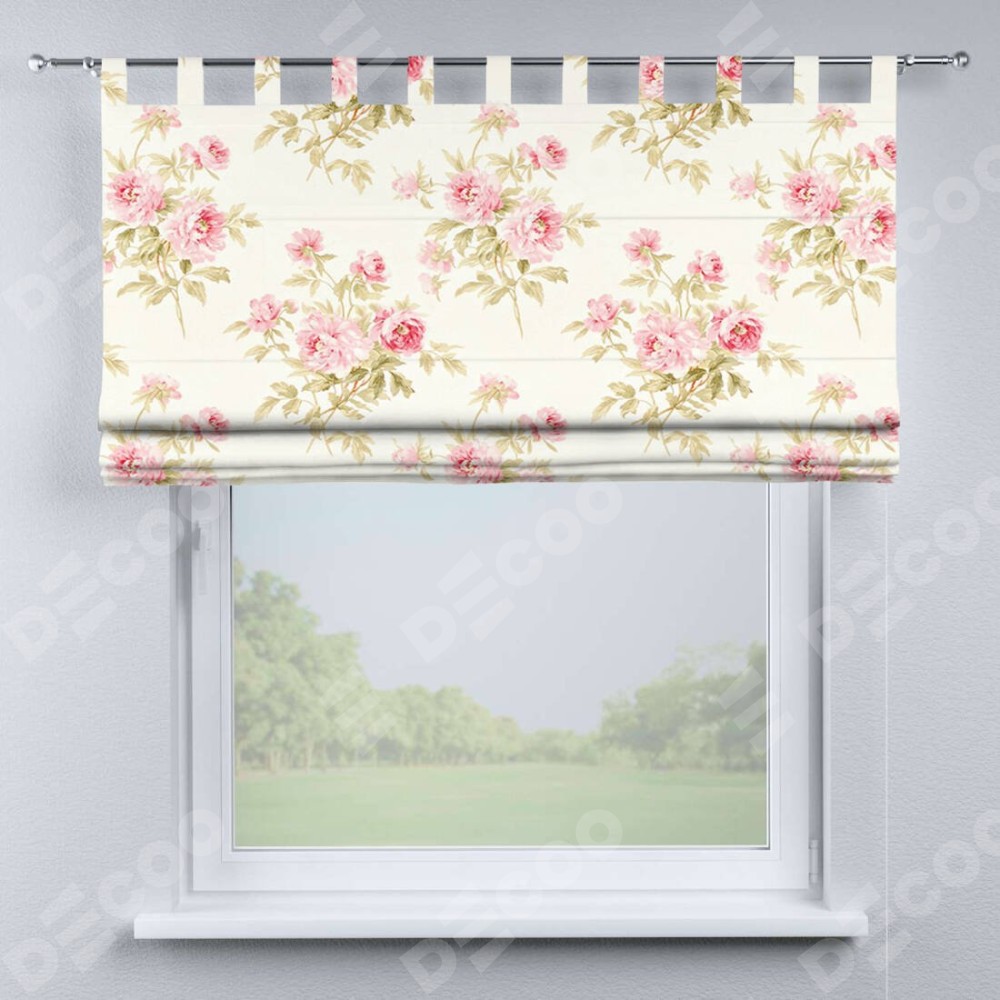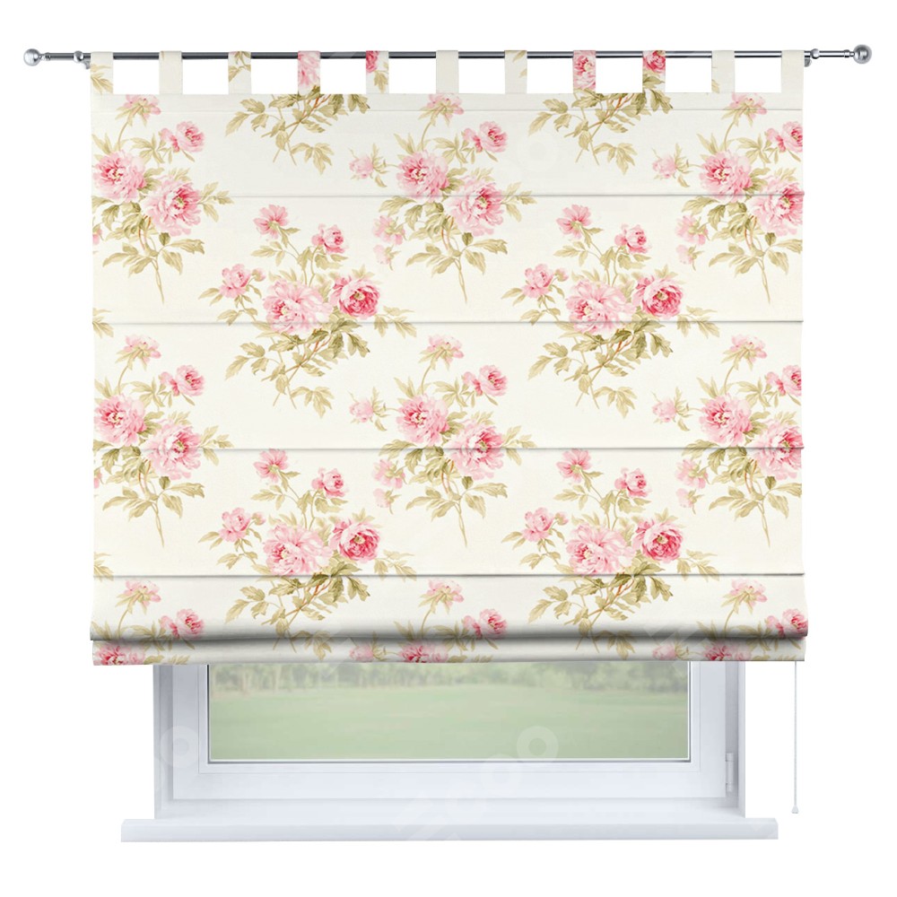 Римская штора производителя «Cortin», используется для проёма, пошита из ткани блэкаут с нанесением сублимационной печати «Английский шебби-шик». Данная модель пошита на петлях, комплектуется на выбор круглым карнизом и подходит для монтажа на стену. Римская штора на петлях имеет простую систему регулировки высоты, отличительным преимуществом данной модели является простой способ монтажа. Достаточно повесить ее на трубу и штора готова!