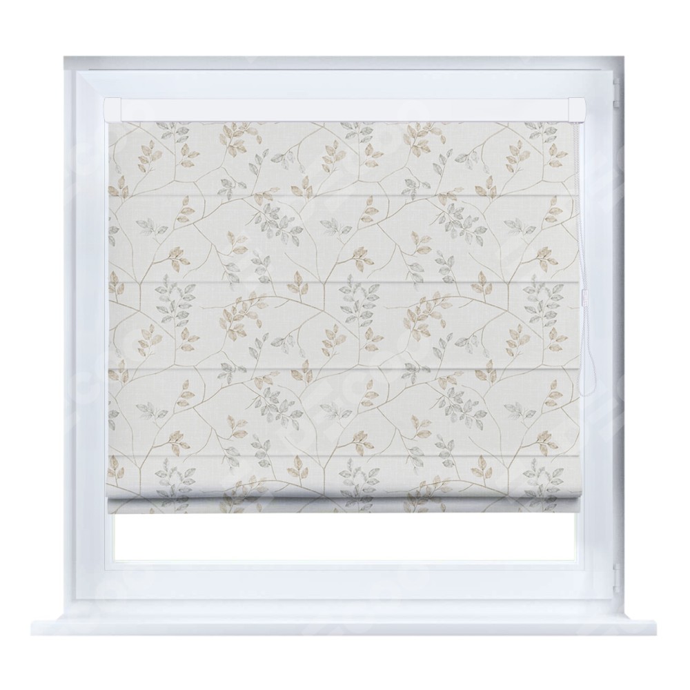 Римская штора производителя «Cortin», устанавливается на створку окна, пошита из ткани блэкаут с нанесением сублимационной печати «Флора бежевый». Штора шьётся по индивидуальным размерам, для данного типа римской шторы возможная ширина от 35 до 150 см., высота до 250 см.