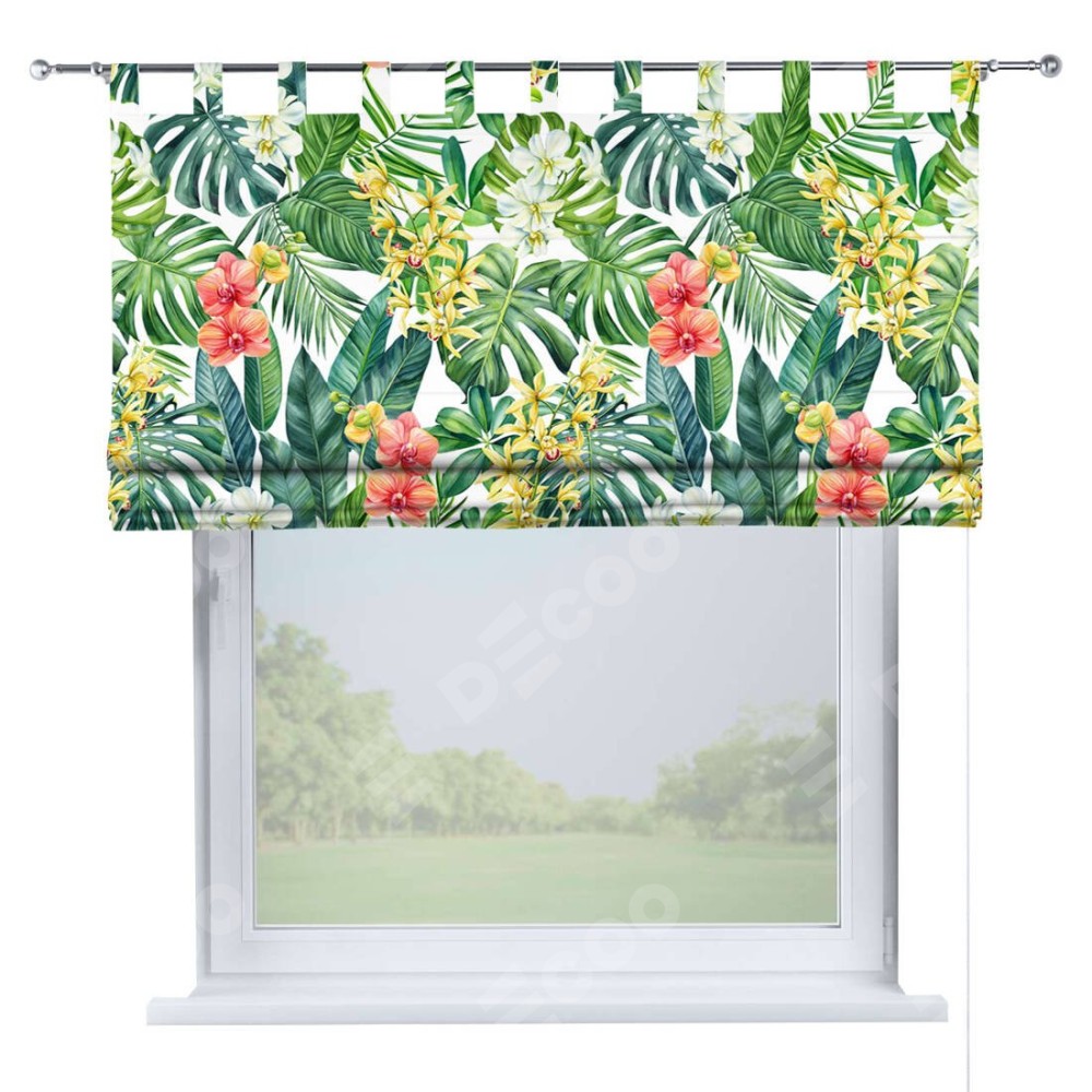 Римская штора производителя «Cortin», используется для проёма, пошита из ткани блэкаут с нанесением сублимационной печати «Орхидеи в тропиках». Данная модель пошита на петлях, комплектуется на выбор круглым карнизом и подходит для монтажа на стену. Римская штора на петлях имеет простую систему регулировки высоты, отличительным преимуществом данной модели является простой способ монтажа. Достаточно повесить ее на трубу и штора готова!