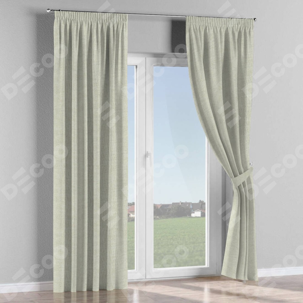 Комплект прямых штор, от производителя «Cortin», пошиты из ткани рогожка димаут серо-бежевый, артикул ткани 91014. С изнаночной стороны в верхней части штор пристрачивается шторная лента с декоративными складками «Карандаш». Для создания элегантных складок прямые шторы шьются по стандарту с коэффициентом 1:2 (на 100 см. ширины проёма 200 см. ширины ткани).