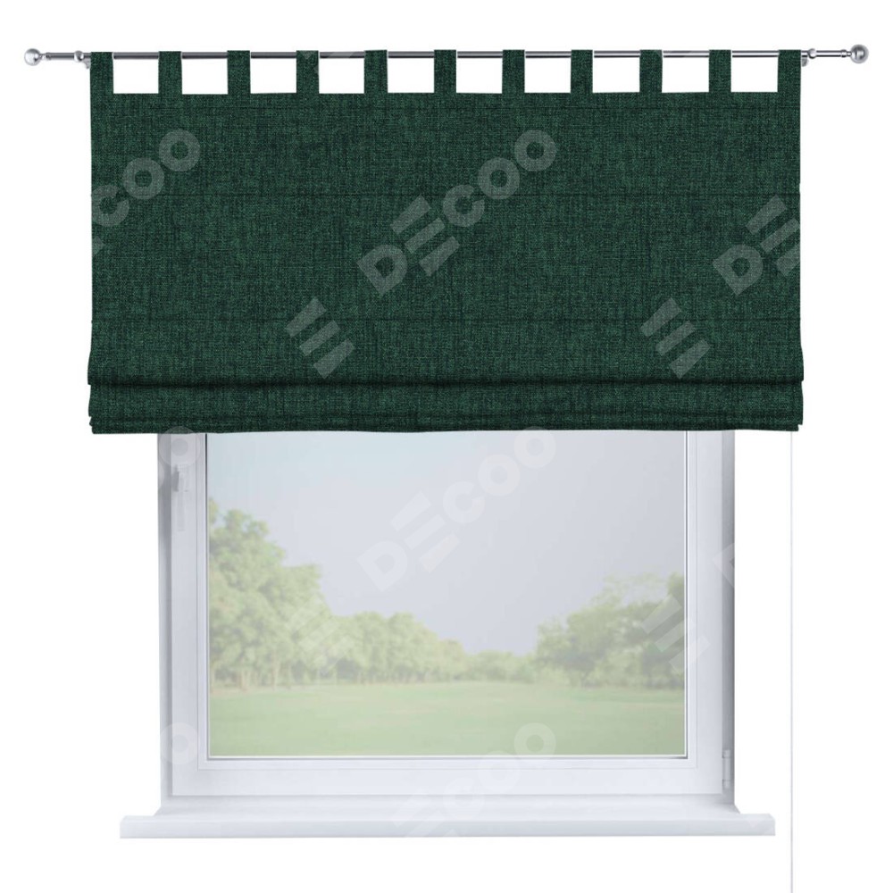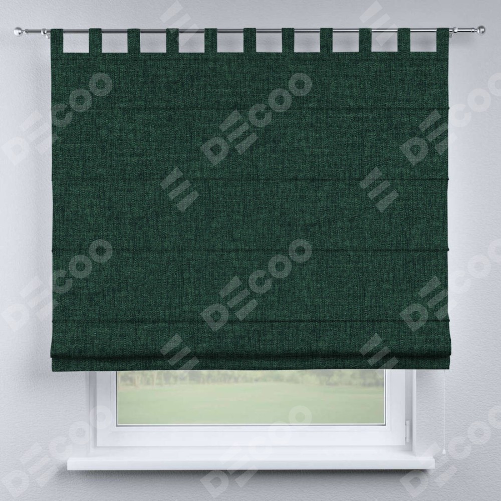 Римская штора производителя «Cortin», используется для проёма, пошита из ткани рогожка димаут тёмно-зелёный, артикул ткани 91022. Данная модель пошита на петлях, комплектуется на выбор круглым карнизом и подходит для монтажа на стену. Римская штора на петлях имеет простую систему регулировки высоты, отличительным преимуществом данной модели является простой способ монтажа. Достаточно повесить ее на трубу и штора готова!