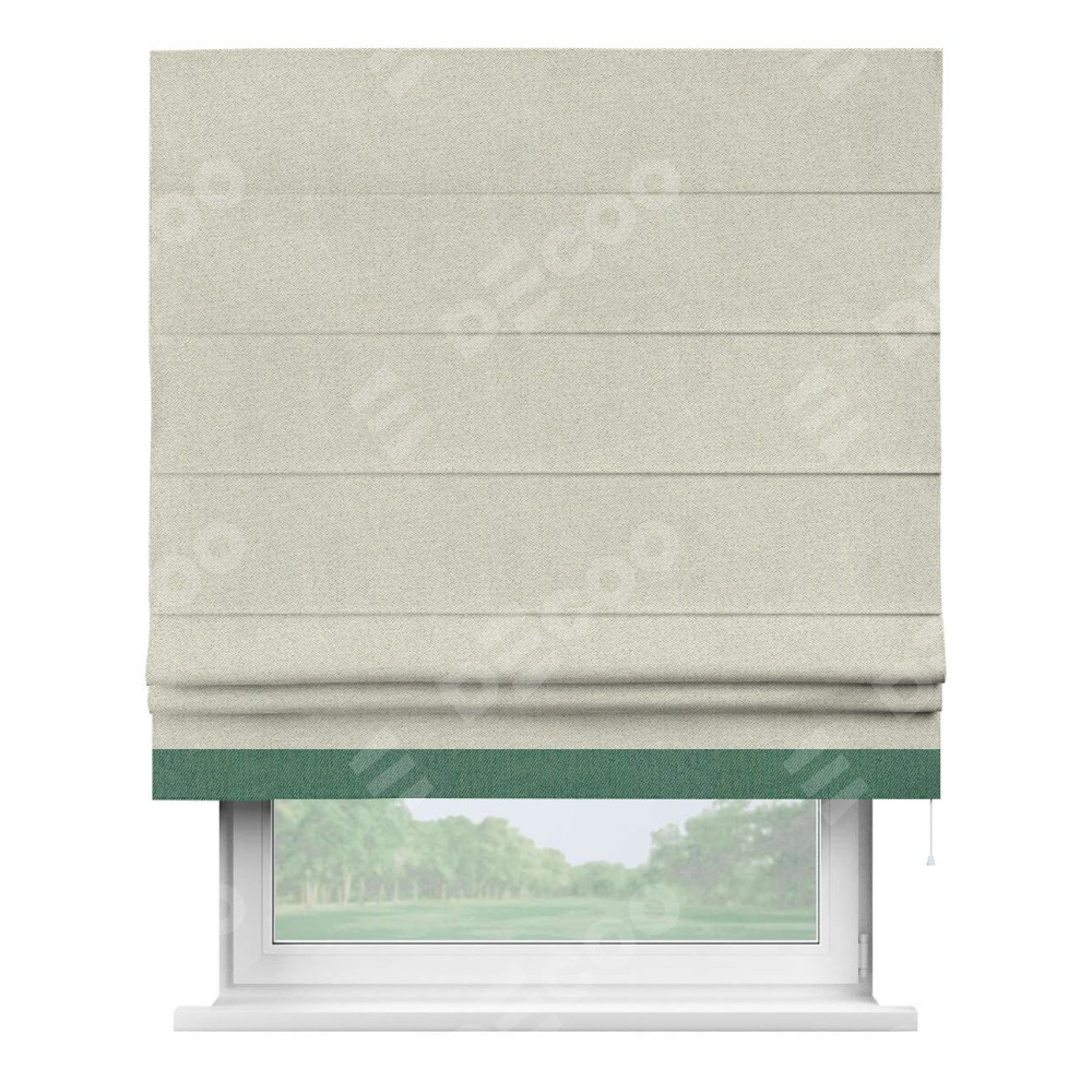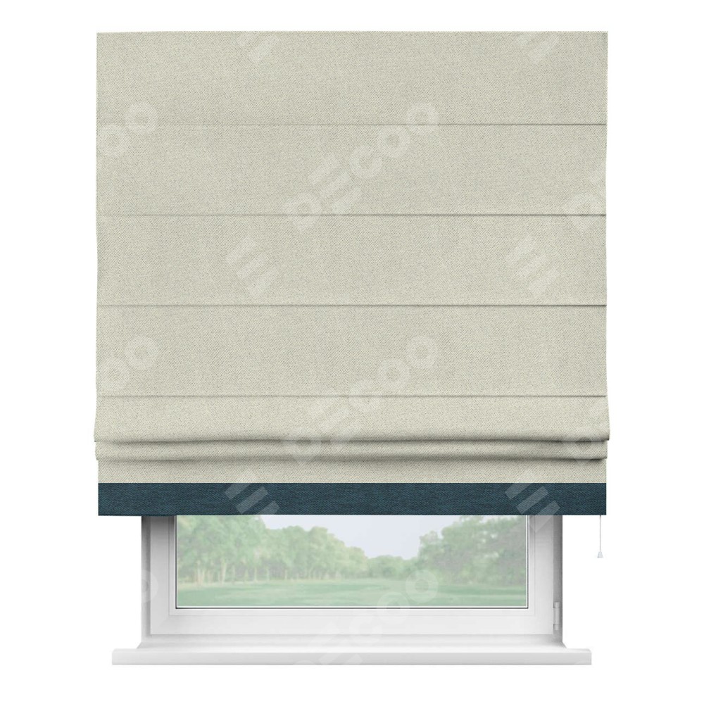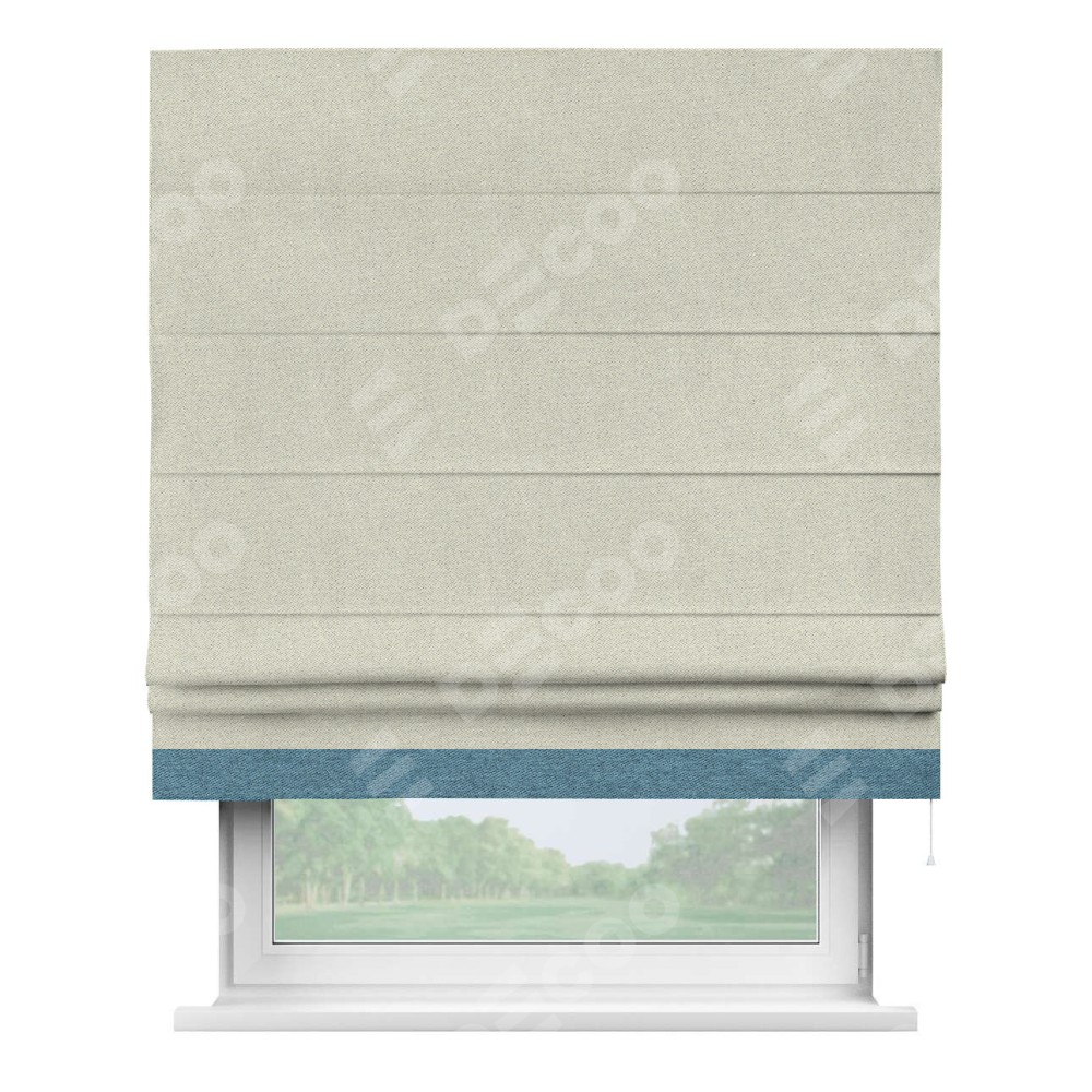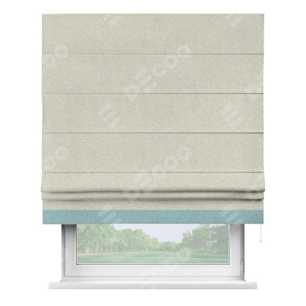 Римская штора пошита из ткани твид блэкаут шампань, артикул: 90929, с отделкой кантом «Джестер» выделяется своей уникальной особенностью — кантом, расположенным только снизу шторы. Этот дизайн добавляет оригинальности и игривости оконному оформлению, делая акцент на нижней части шторы и создавая интересный визуальный эффект. Отделка кантом на нижнем крае не только служит эстетической функции, но и способствует увеличению прочности и износостойкости ткани в этом месте.