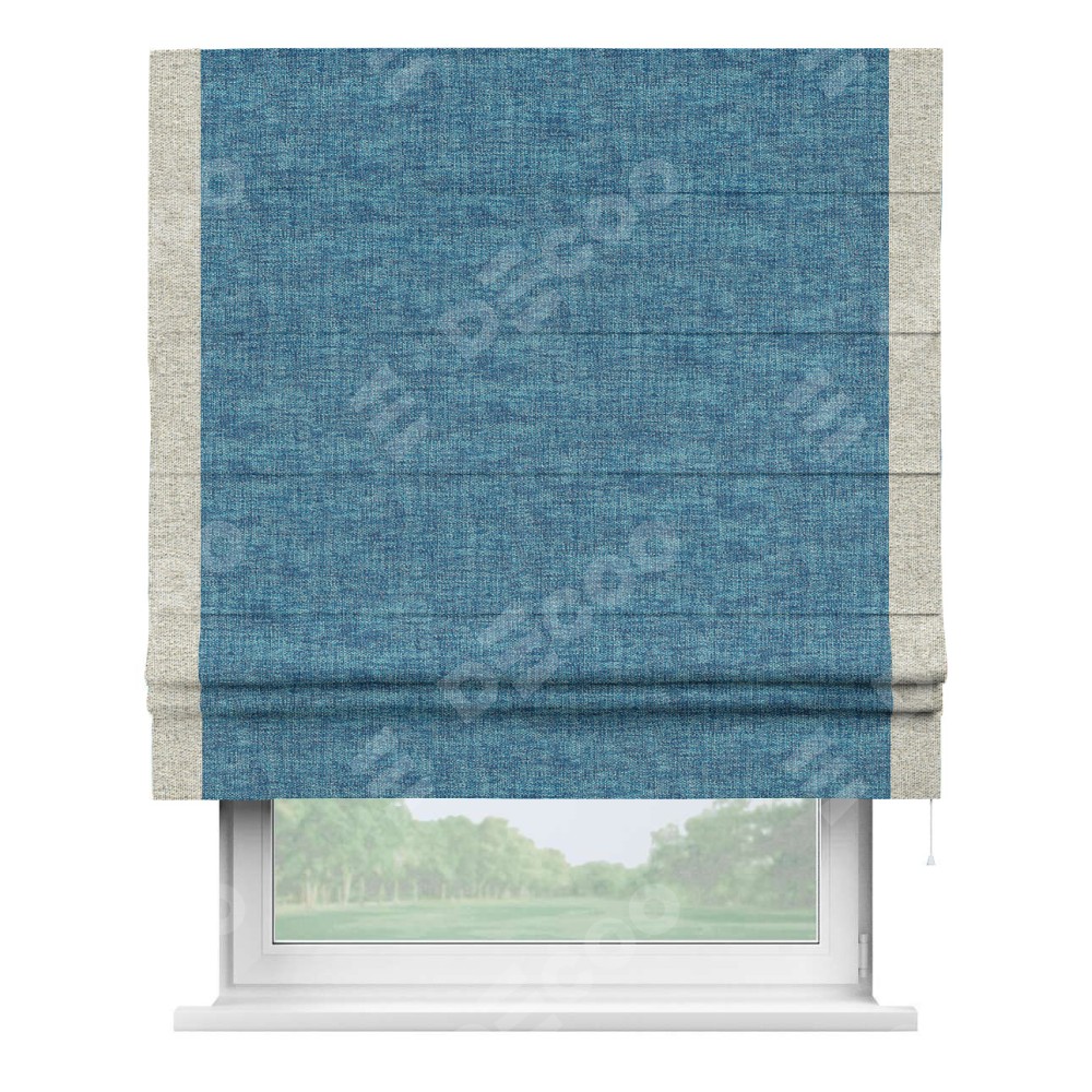 Римская штора «Кортин» для проёма, рогожка димаут лазурно-синий, с кантом Стрим Дуо