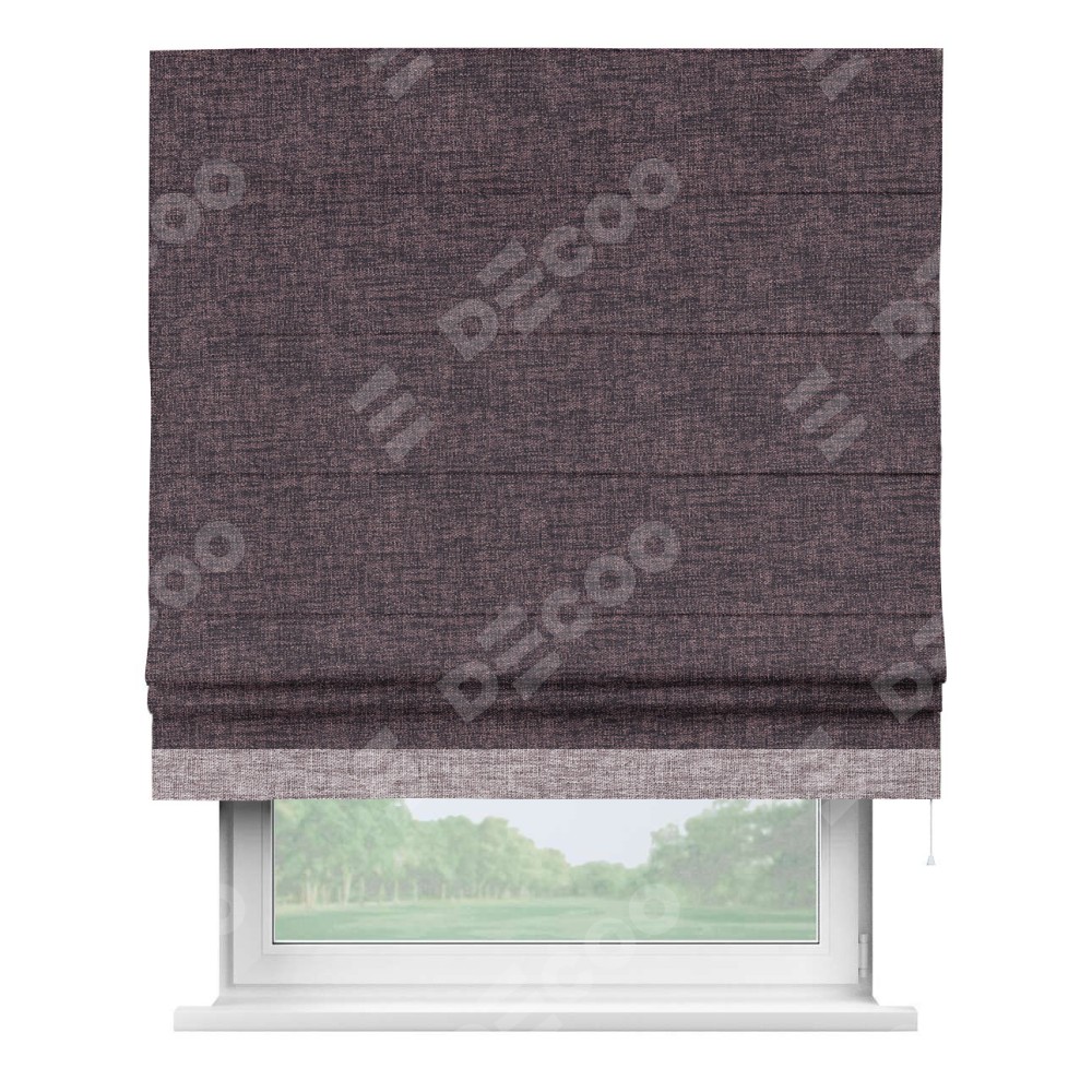 Римская штора пошита из ткани рогожка димаут розово-коричневый, артикул: 91020, с отделкой кантом «Джестер» выделяется своей уникальной особенностью — кантом, расположенным только снизу шторы. Этот дизайн добавляет оригинальности и игривости оконному оформлению, делая акцент на нижней части шторы и создавая интересный визуальный эффект. Отделка кантом на нижнем крае не только служит эстетической функции, но и способствует увеличению прочности и износостойкости ткани в этом месте.