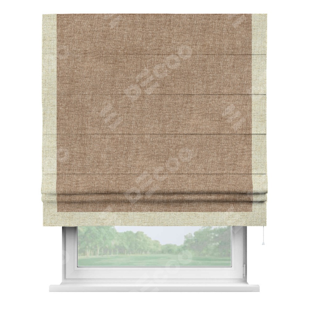 Римская штора с отделкой кантом «Виктория», пошита из ткани рогожка светло-коричневый, артикул: 91017. представляет собой элегантное решение для оконного оформления. Кант по бокам и снизу шторы добавляет изысканности и аккуратности внешнему виду, подчеркивая линии и форму шторы. Этот элемент декора не только украшает, но и выполняет практическую функцию, защищая края ткани от износа. Кант может быть выполнен в контрастном или гармонирующем цвете, что позволяет добиться различных стилевых эффектов и легко вписать штору в интерьер комнаты.