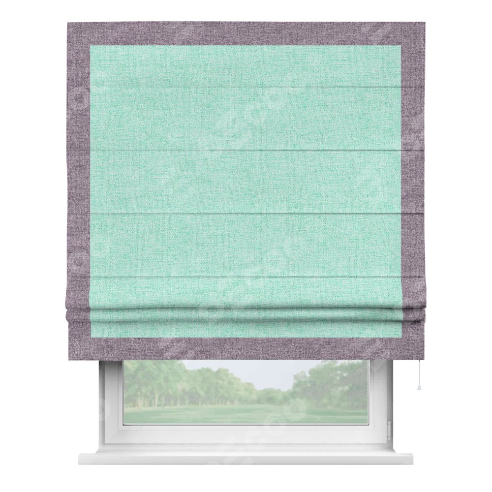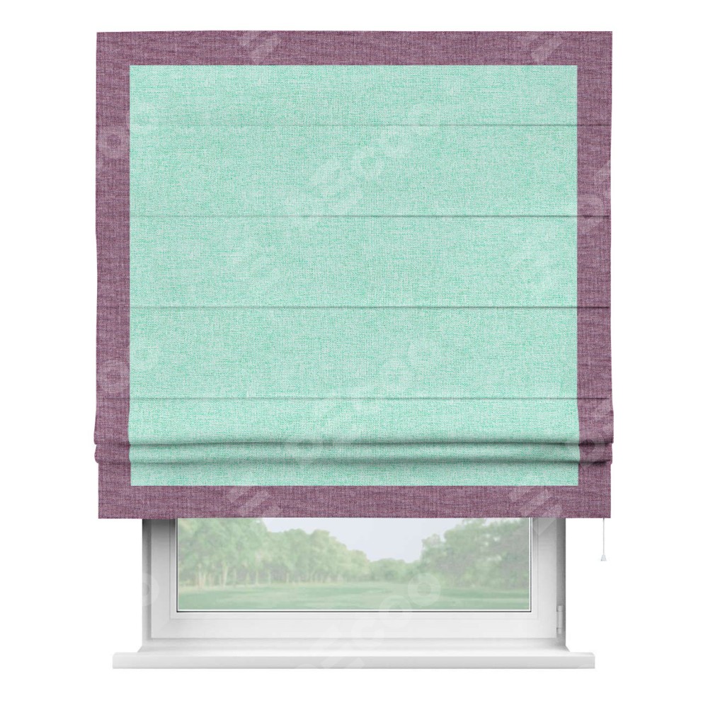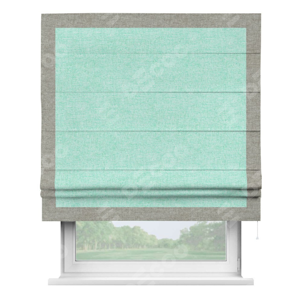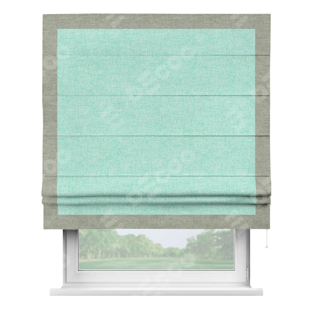 Римская штора «Кортин» для проёма, лён кашемир мятный, с кантом Чесс