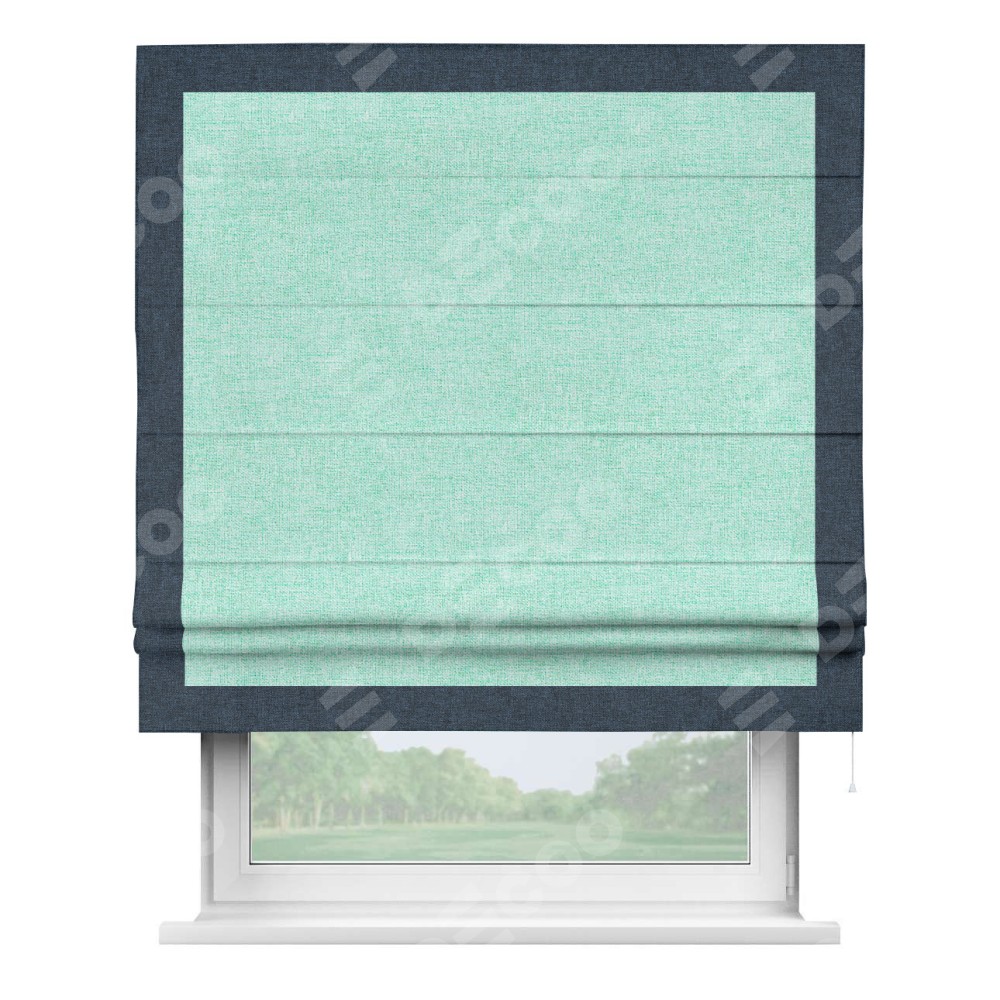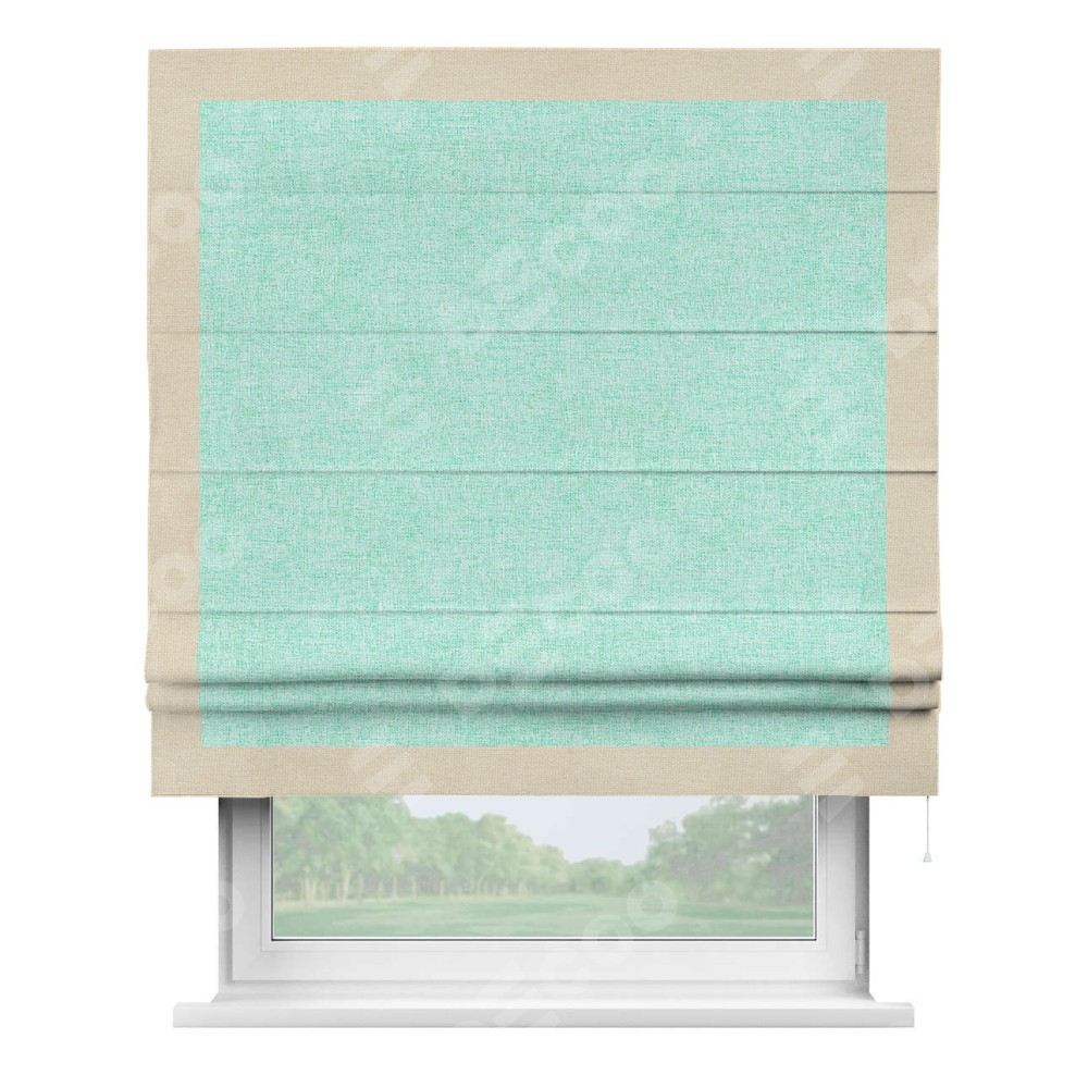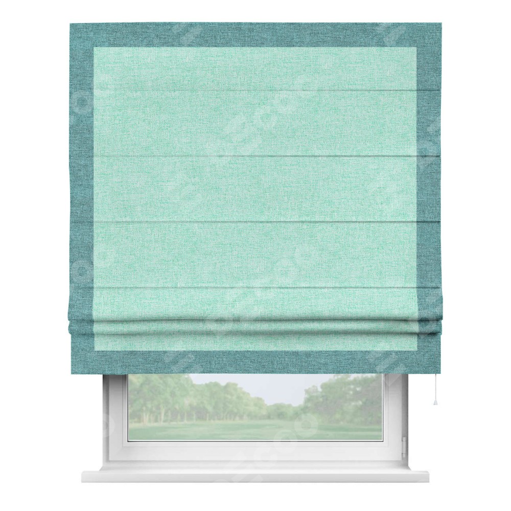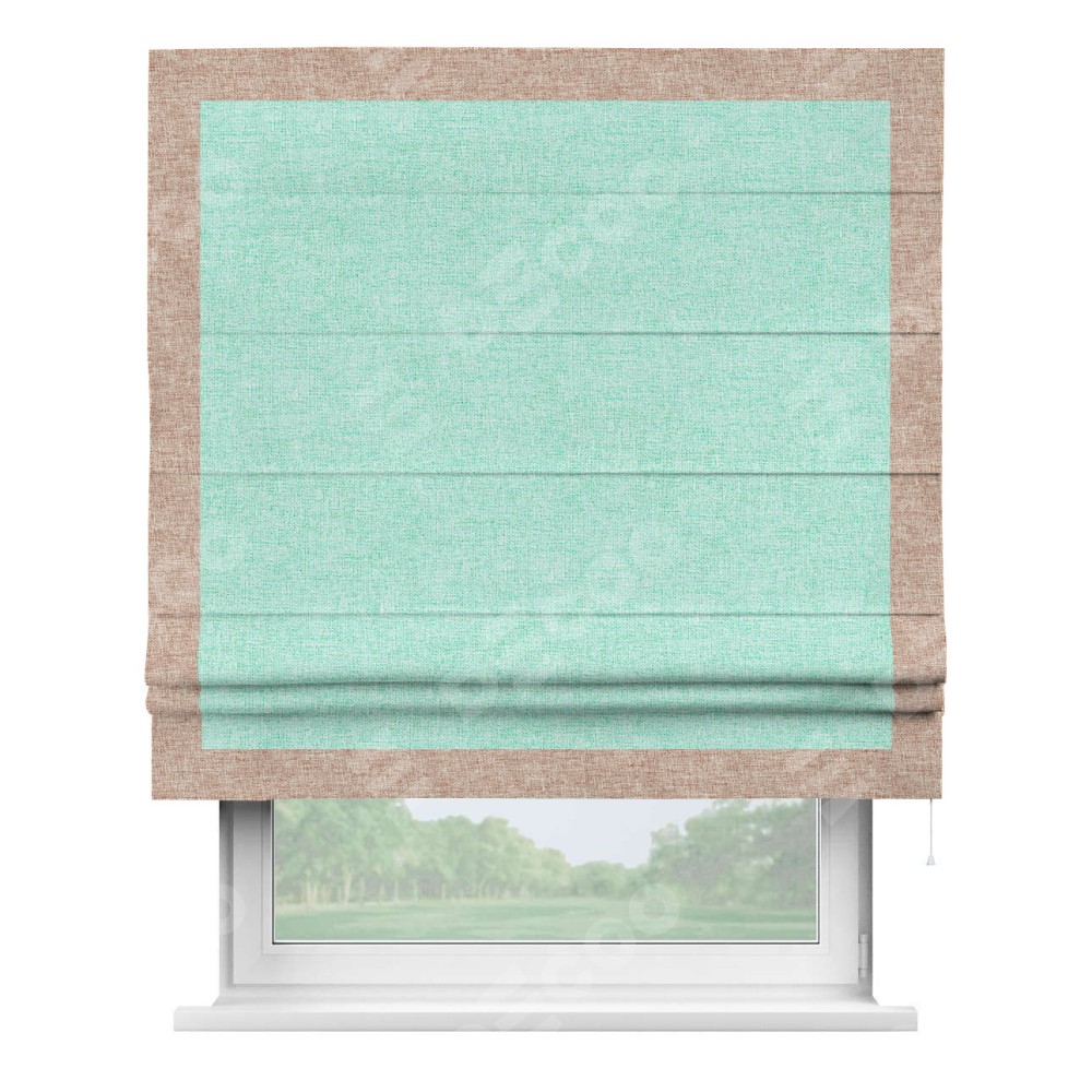 Римская штора «Кортин» для проёма, лён кашемир мятный, с кантом Чесс