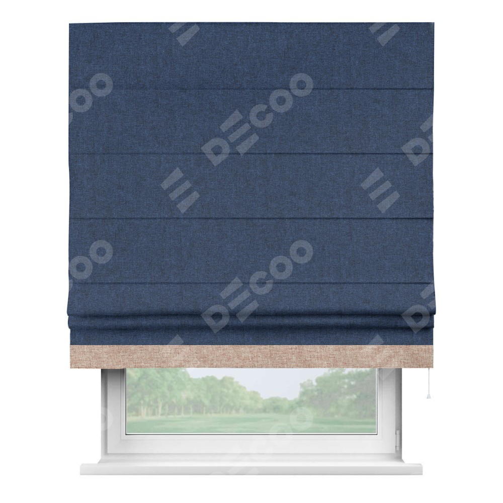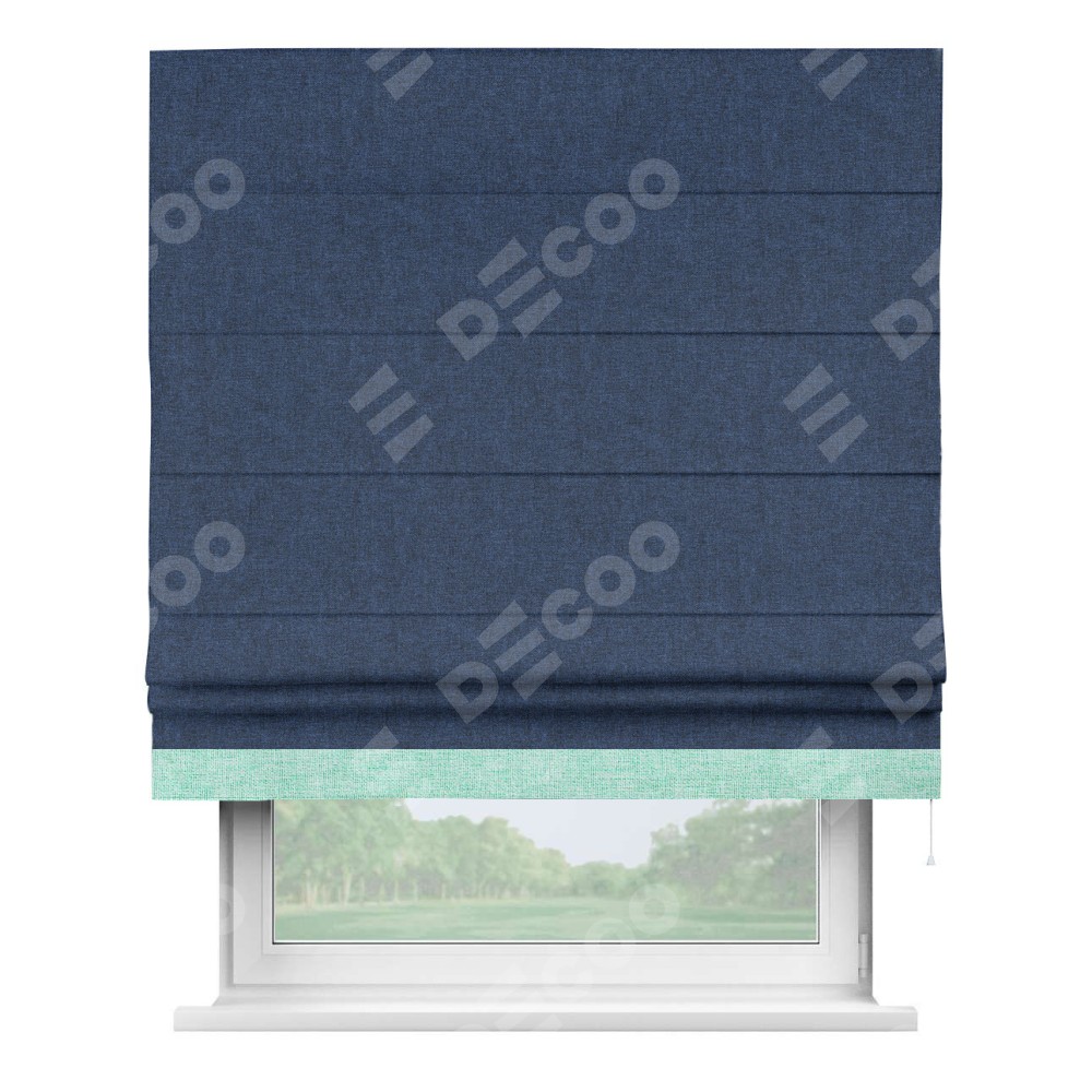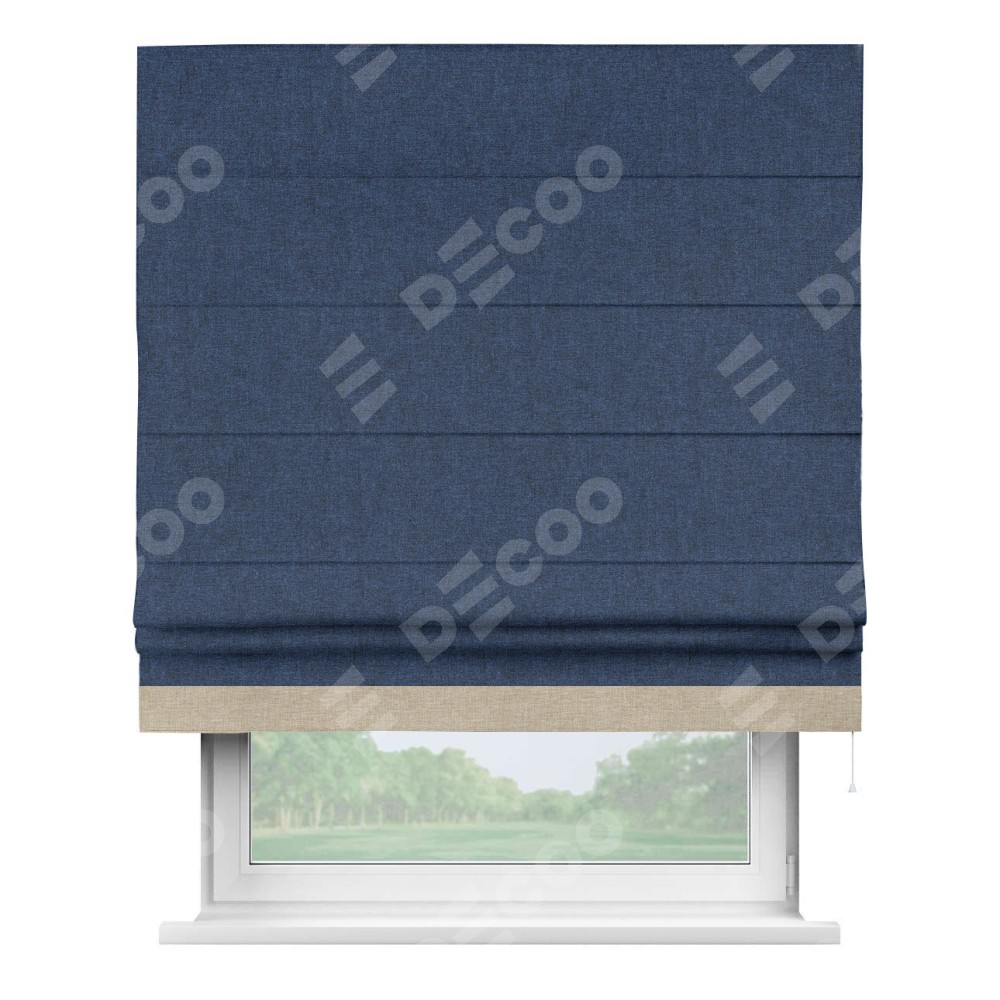 Римская штора «Кортин» для проёма, лён кашемир тёмно-синий, с кантом Джестер