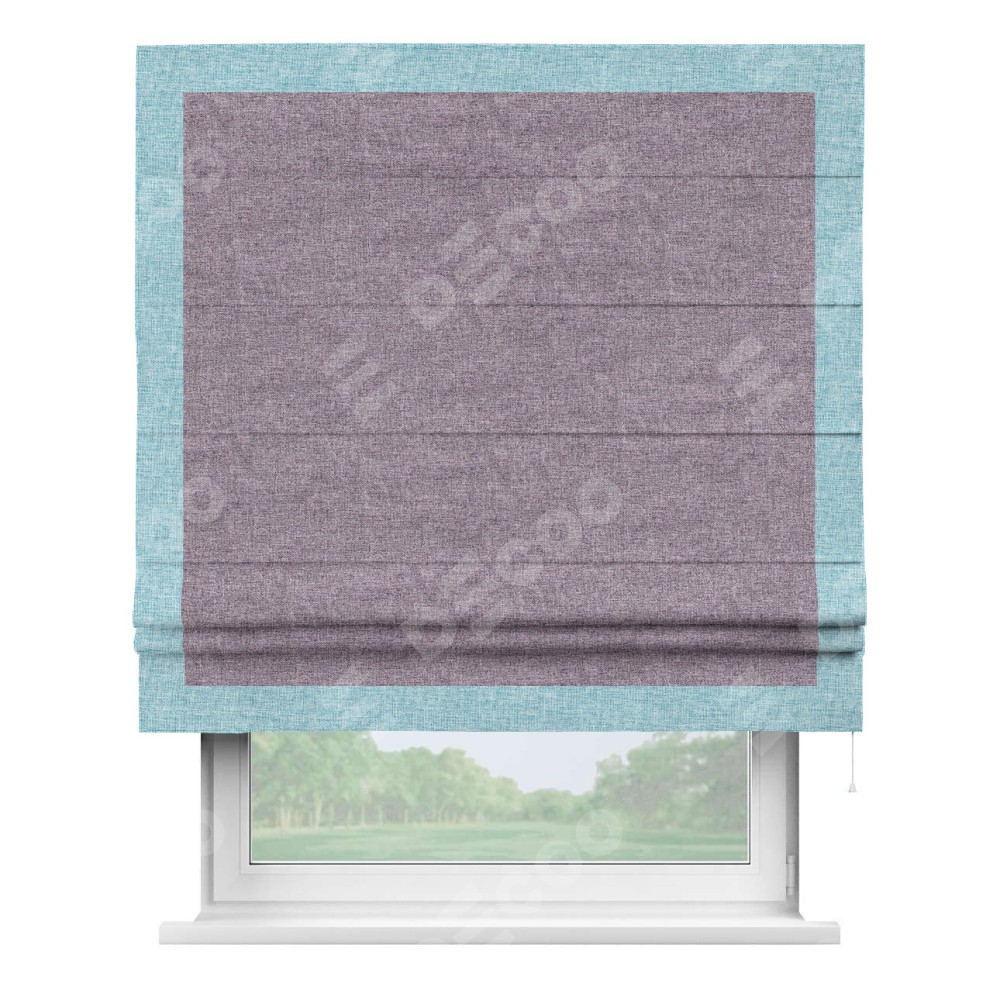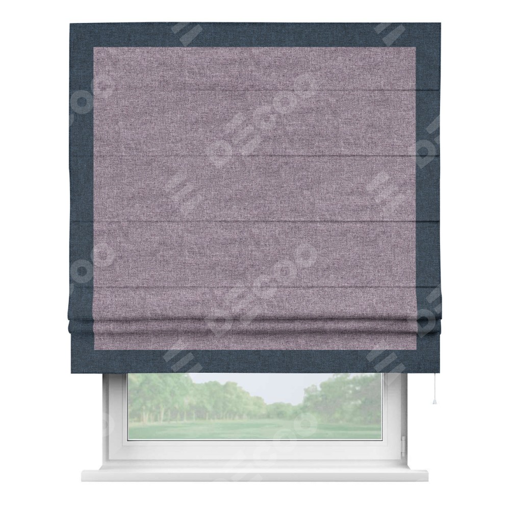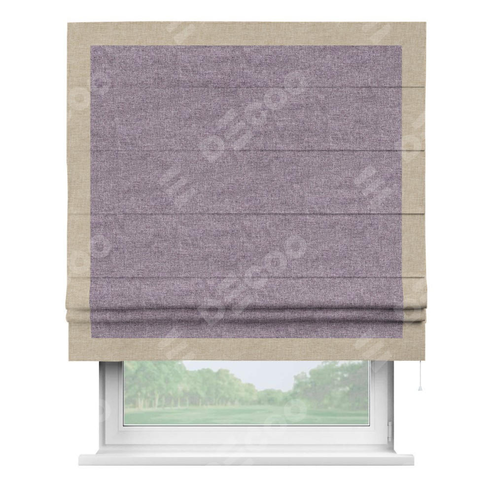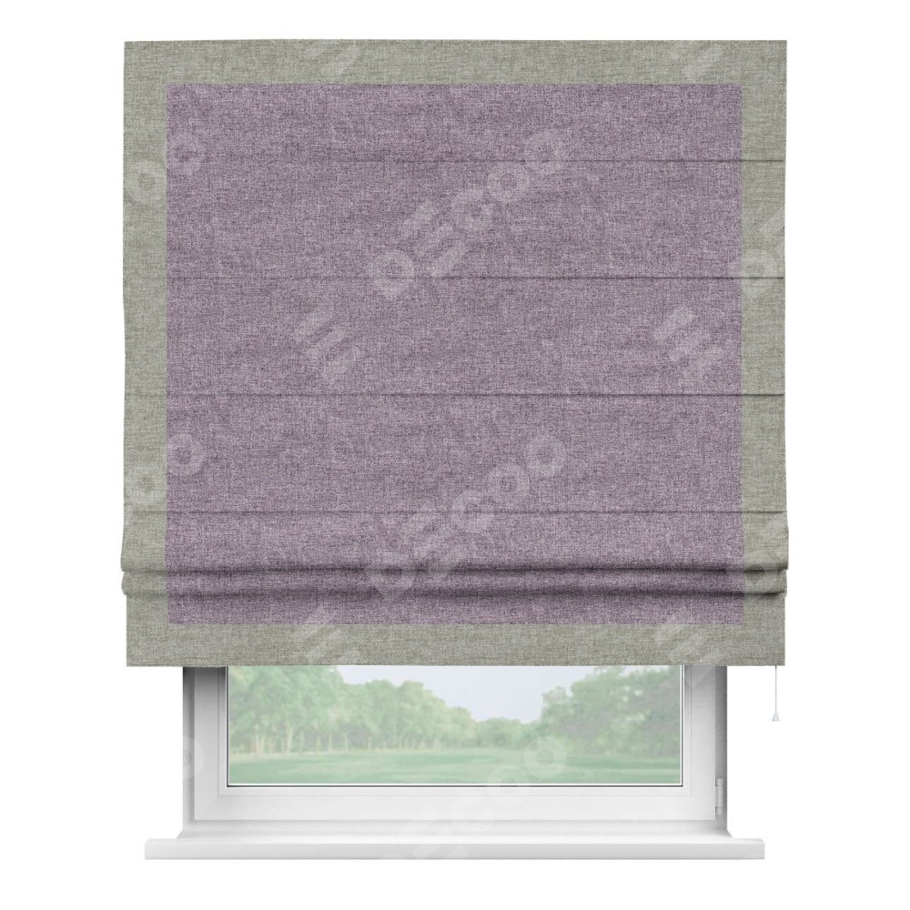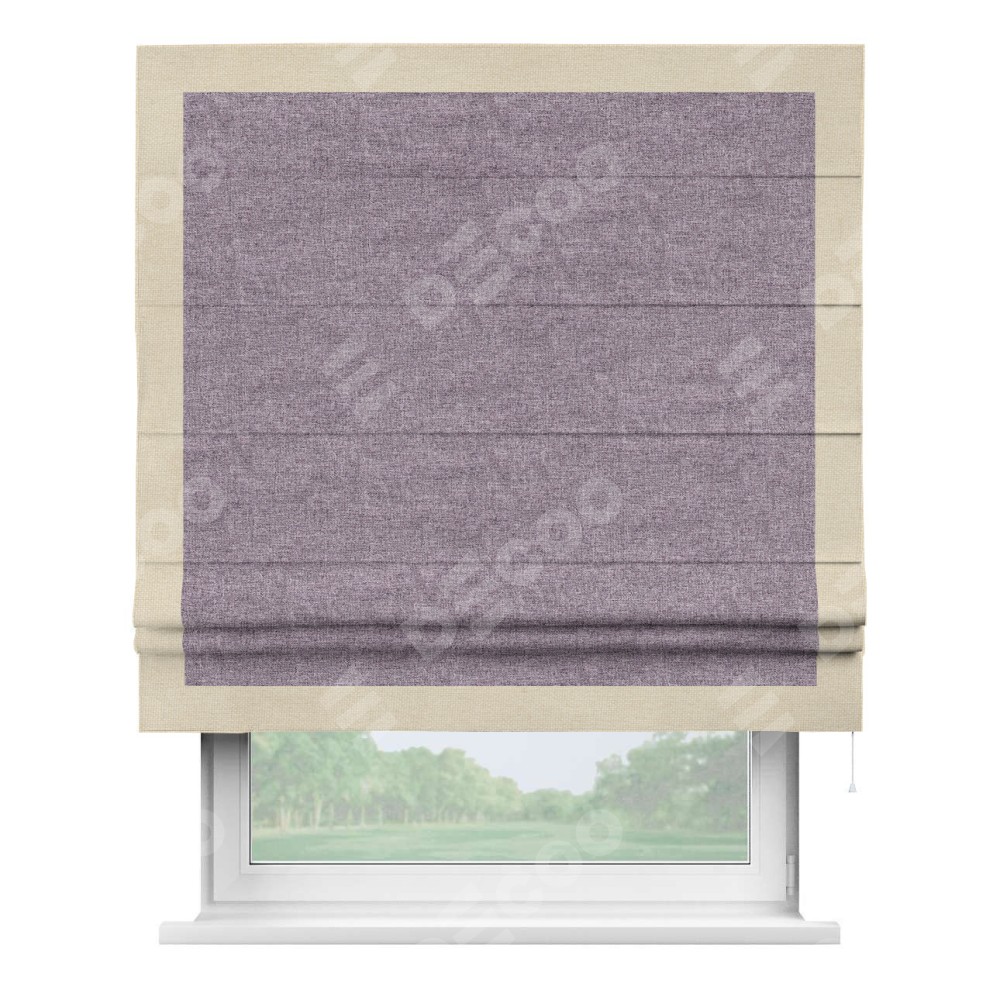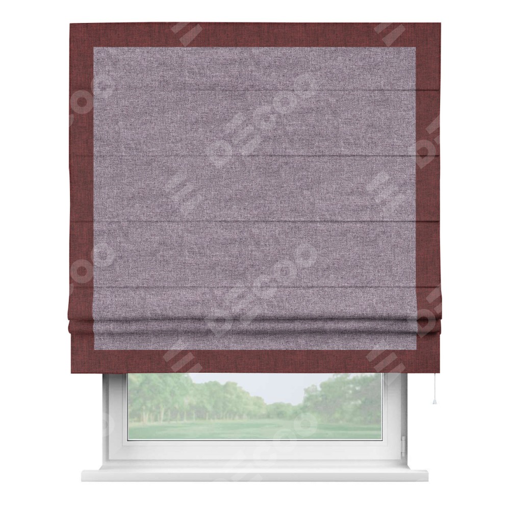 Римская штора «Кортин» для проёма, лён кашемир фиолетовый, с кантом Чесс
