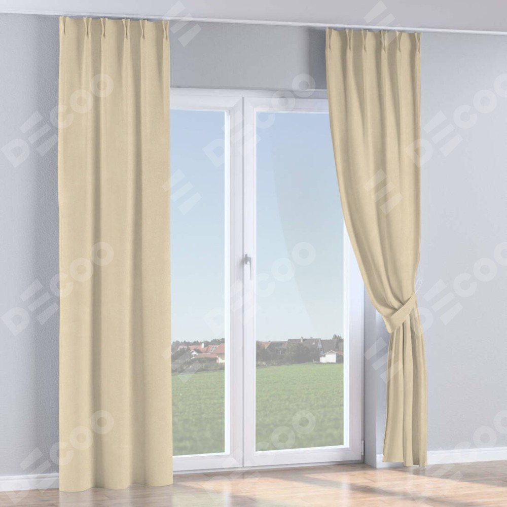 Комплект прямых штор, от производителя «Cortin», пошиты из ткани однотонный блэкаут кофейно-бежевый, артикул ткани 91566−1. С изнаночной стороны в верхней части штор пристрачивается шторная лента с декоративными складками «Кустик». Для создания элегантных складок рекомендуемый коэффициент 1:2 (на 100 см. ширины проёма 200 см. ширины ткани). Важно! Ширина штор указана без учёта коэффициента сборки!