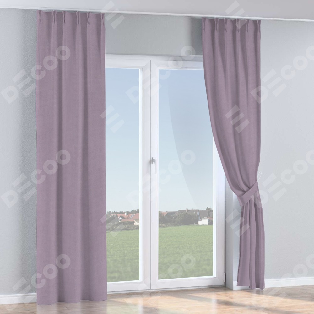 Комплект прямых штор, от производителя «Cortin», пошиты из ткани однотонный блэкаут лиловый, артикул ткани 91577. С изнаночной стороны в верхней части штор пристрачивается шторная лента с декоративными складками «Кустик». Для создания элегантных складок рекомендуемый коэффициент 1:2 (на 100 см. ширины проёма 200 см. ширины ткани). Важно! Ширина штор указана без учёта коэффициента сборки!