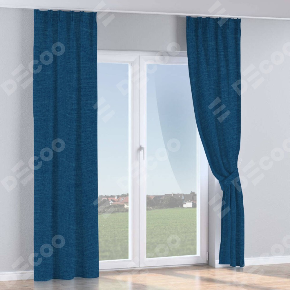 Комплект прямых штор, от производителя «Cortin», пошиты из ткани лён синий, артикул ткани 104496. С изнаночной стороны в верхней части штор пристрачивается шторная лента с декоративными складками «Кустик». Для создания элегантных складок рекомендуемый коэффициент 1:2 (на 100 см. ширины проёма 200 см. ширины ткани). Важно! Ширина штор указана без учёта коэффициента сборки!