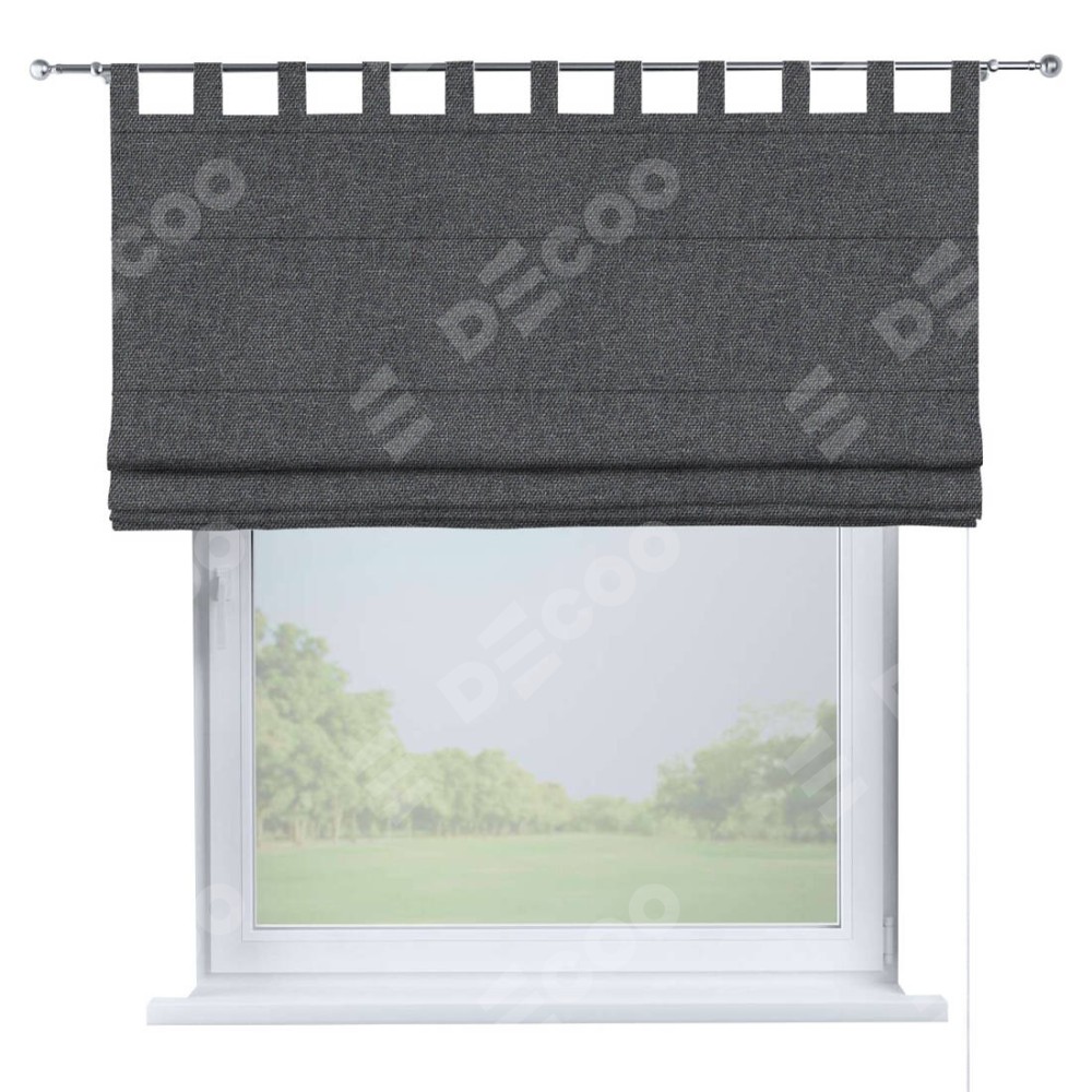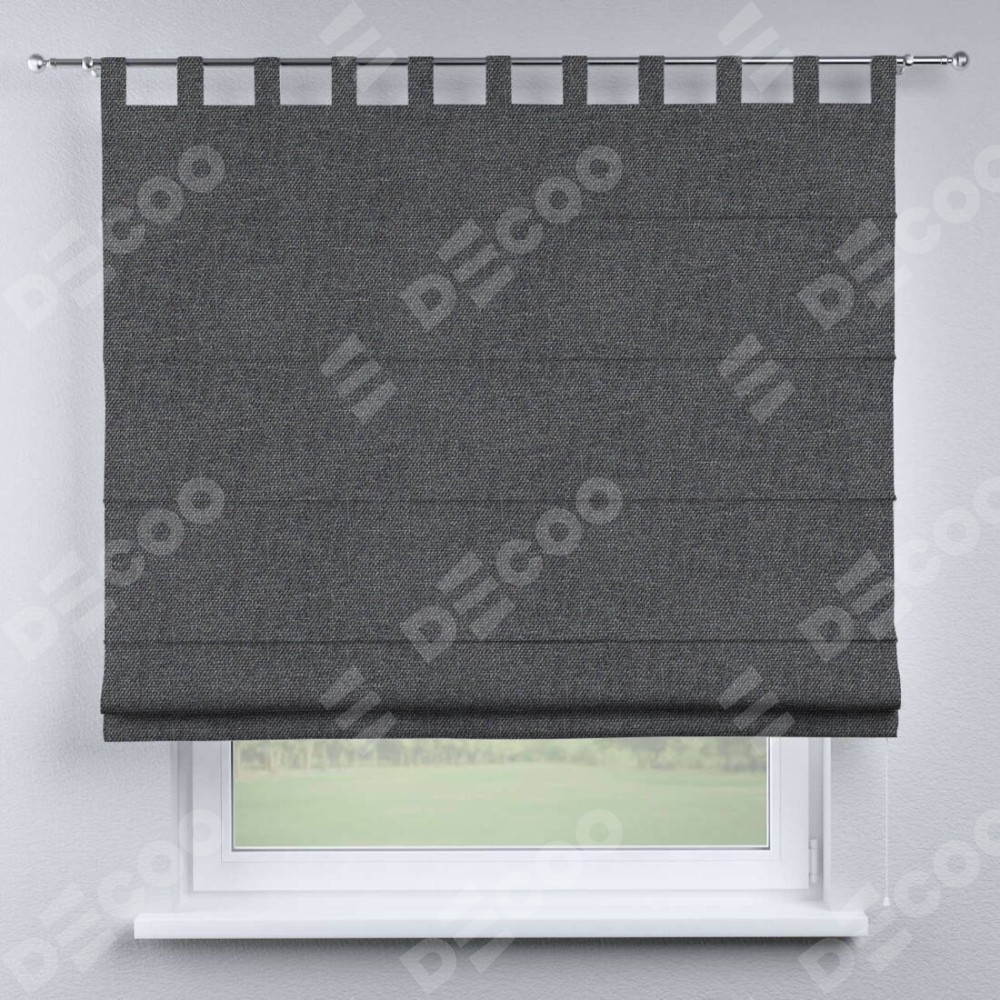 Римская штора производителя «Cortin», используется для проёма, пошита из ткани лён димаут графит, артикул ткани 140644. Данная модель пошита на петлях, комплектуется на выбор круглым карнизом и подходит для монтажа на стену. Римская штора на петлях имеет простую систему регулировки высоты, отличительным преимуществом данной модели является простой способ монтажа. Достаточно повесить ее на трубу и штора готова!