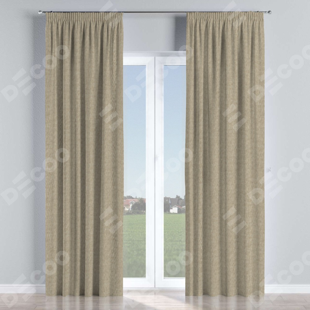 Комплект прямых штор, от производителя «Cortin», пошиты из ткани лён бежевый, артикул ткани 143839. С изнаночной стороны в верхней части штор пристрачивается шторная лента с декоративными складками «Карандаш». Для создания элегантных складок рекомендуемый коэффициент 1:2 (на 100 см. ширины проёма 200 см. ширины ткани). Важно! Ширина штор указана без учёта коэффициента сборки!