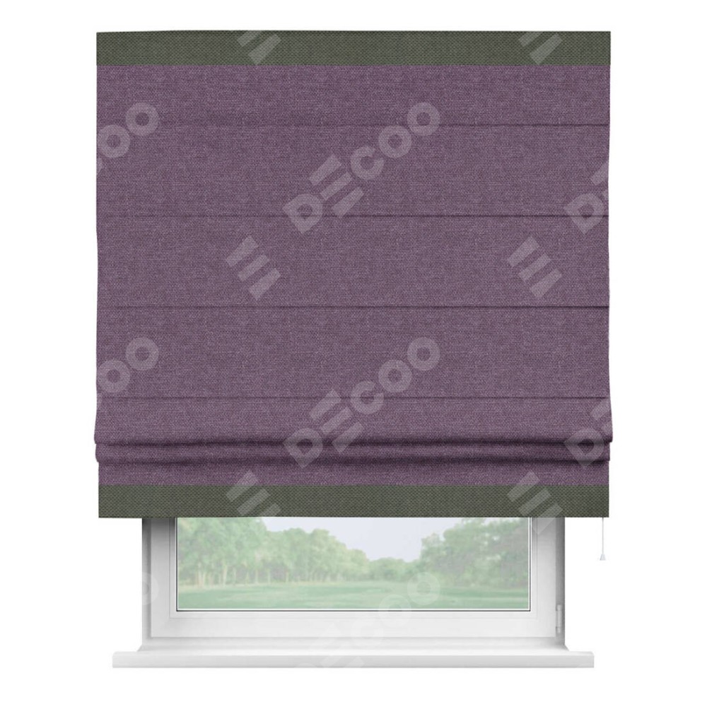 Римская штора производителя «Cortin», используется для проёма, пошита из ткани лён димаут брусника, артикул 16. Отделка шторы кантом «Горизонт», ткань для канта используется из льна димаут разной расцветки на выбор. Имеет универсальный механизм и подходит для монтажа: на потолок, на стену и в нишу.