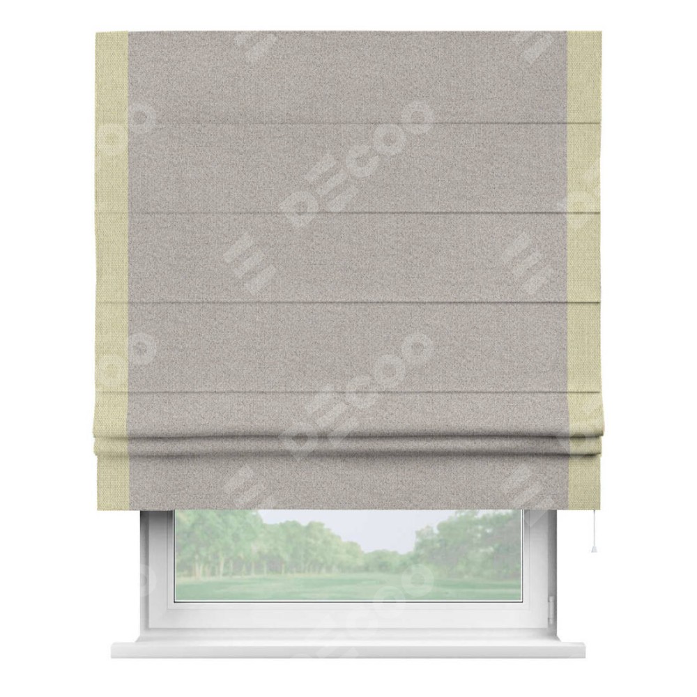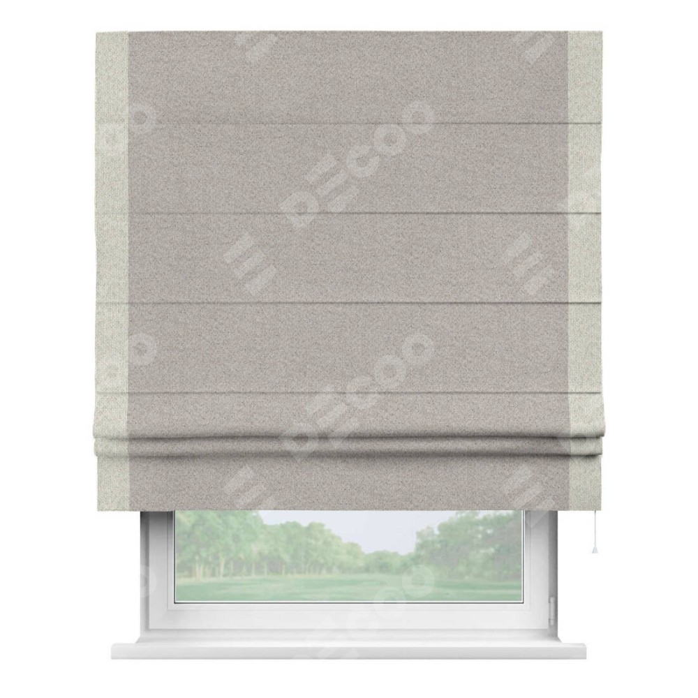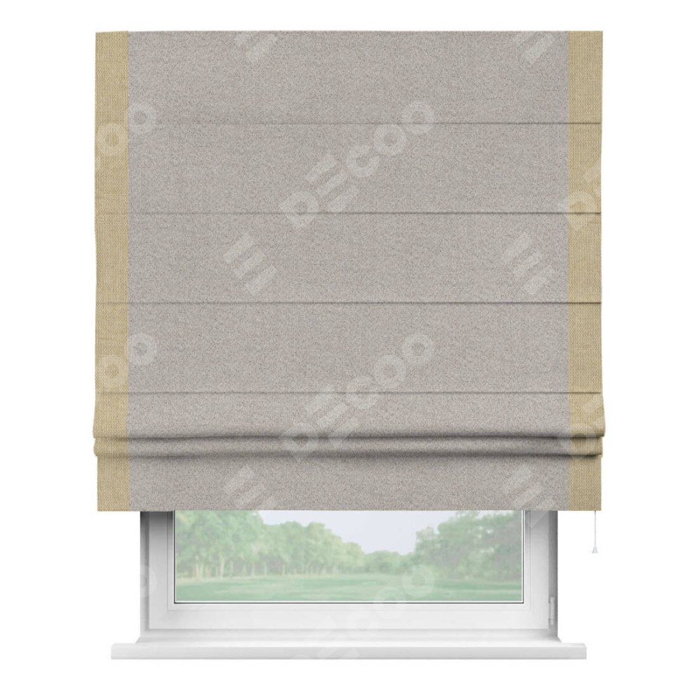 Римская штора «Кортин» для проема, лён димаут серо-бежевый с кантом Стрим Дуо