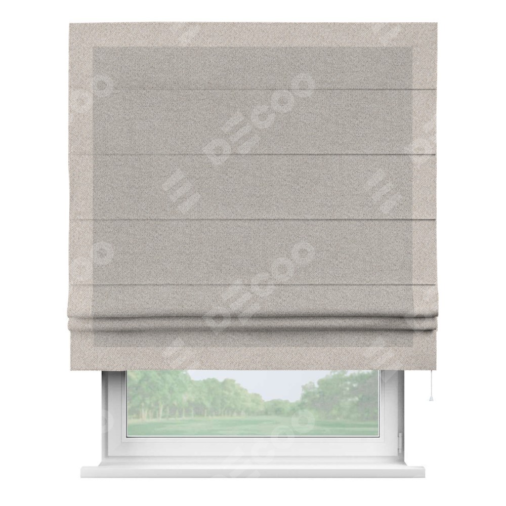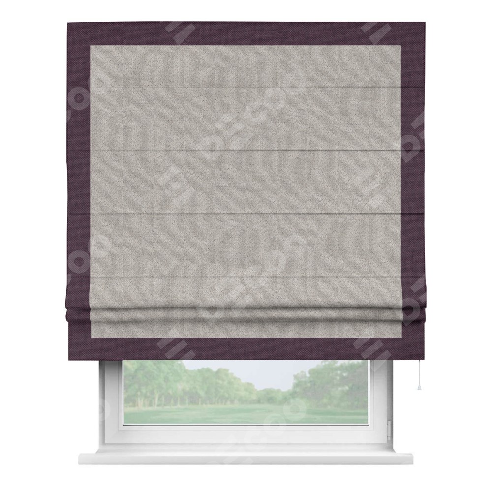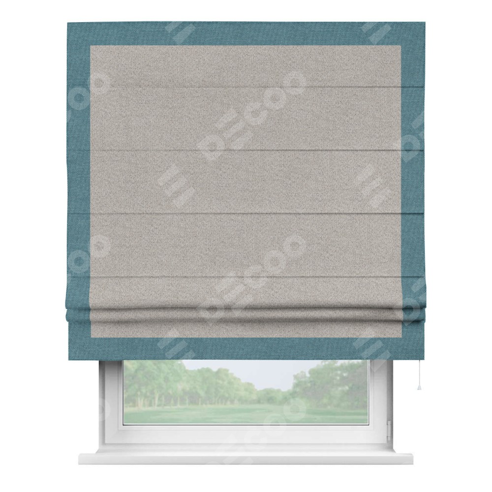Римская штора «Кортин» для проема, лён димаут серо-бежевый с кантом Чесс