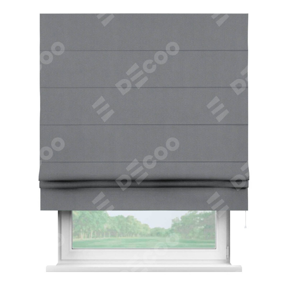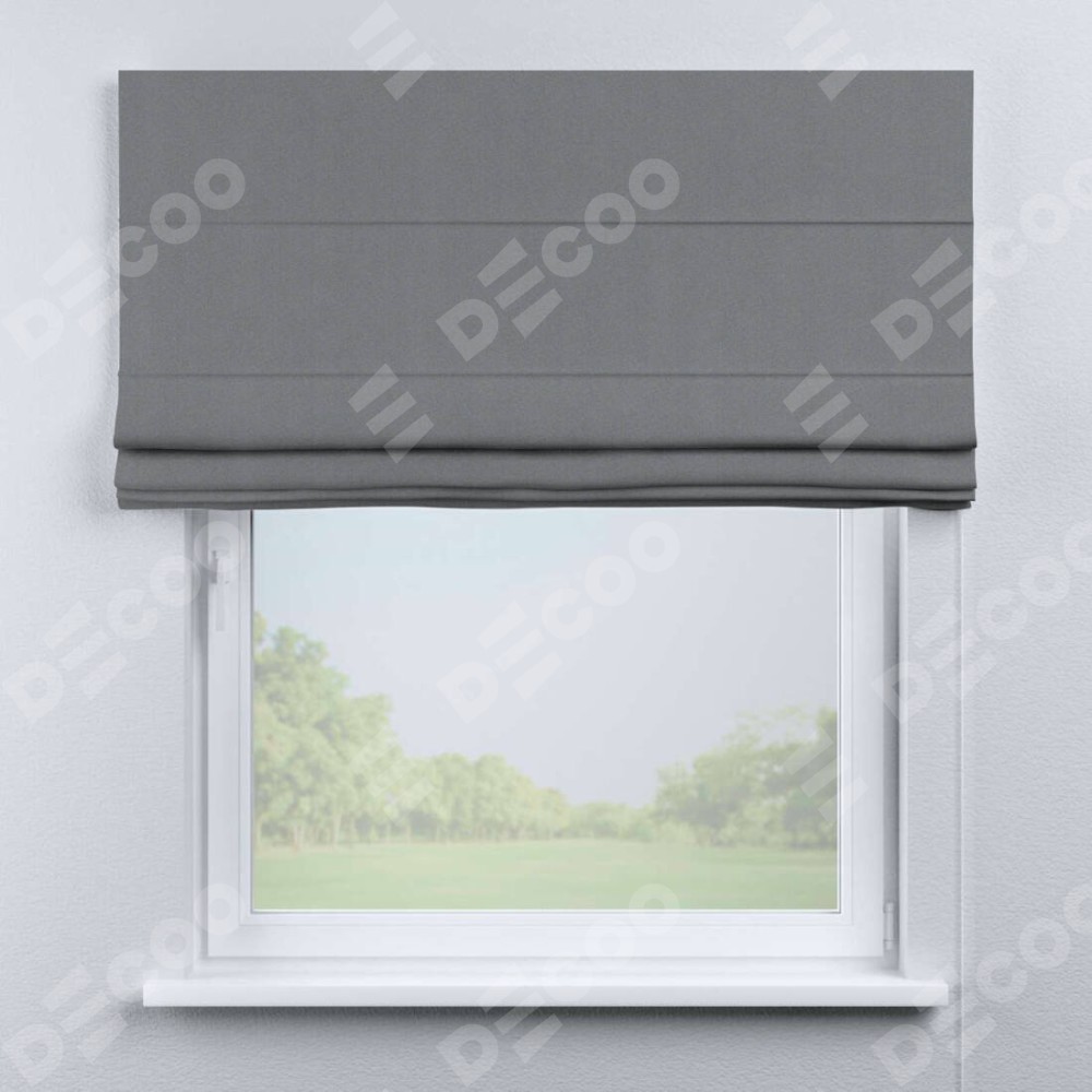 Классическая римская штора производителя «Cortin», пошита из ткани однотонный блэкаут серый, артикул: 146436. Имеет универсальный механизм и подходит для монтажа: на потолок, на стену и в нишу.