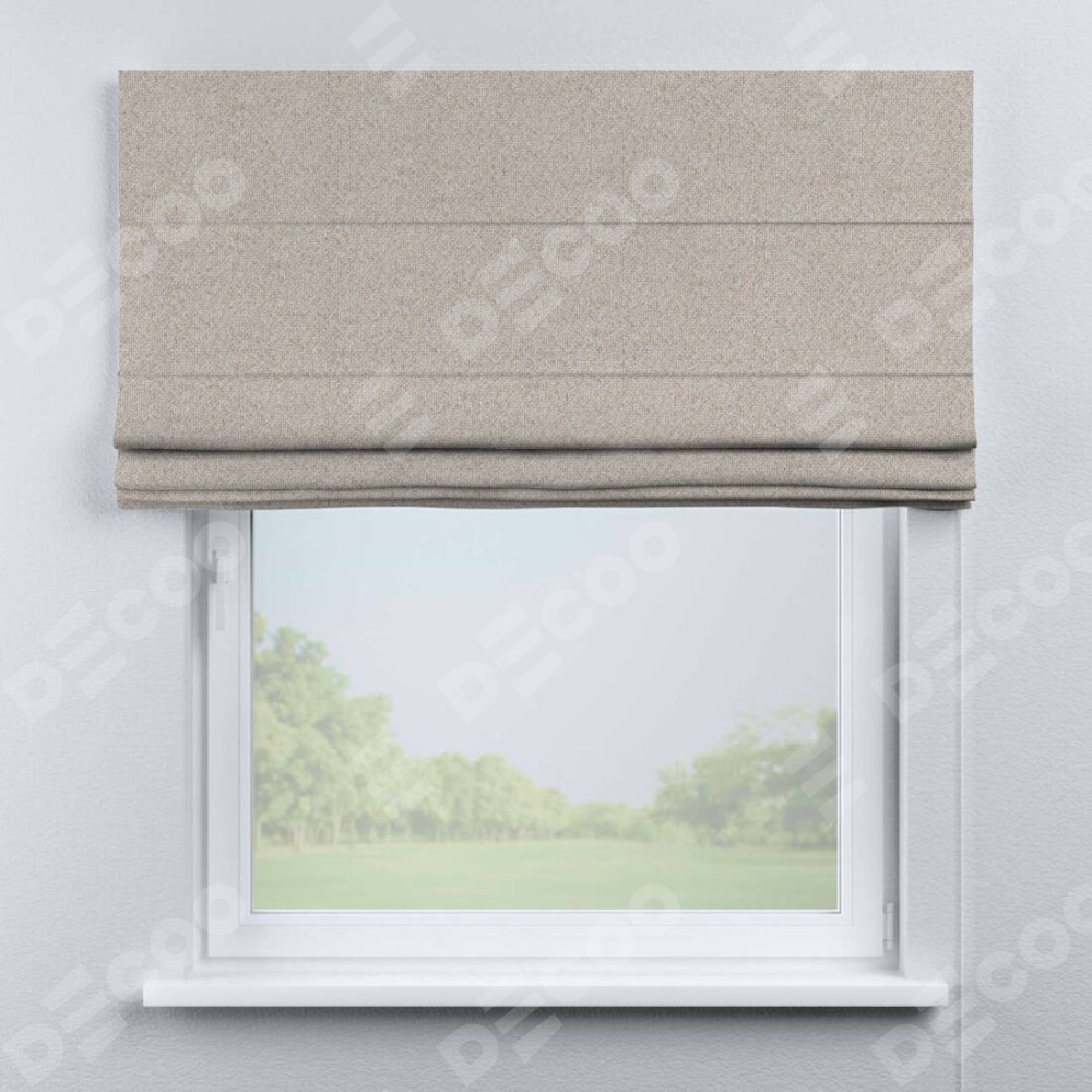 Классическая римская штора производителя «Cortin», пошита из ткани лён димаут бежевый, артикул: 01. Имеет универсальный механизм и подходит для монтажа: на потолок, на стену и в нишу.