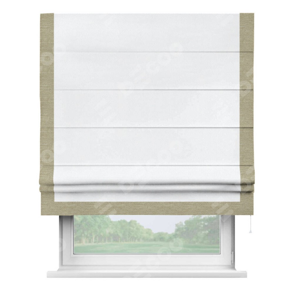 Римская штора «Кортин» для проема, лён димаут белый с кантом Виктория