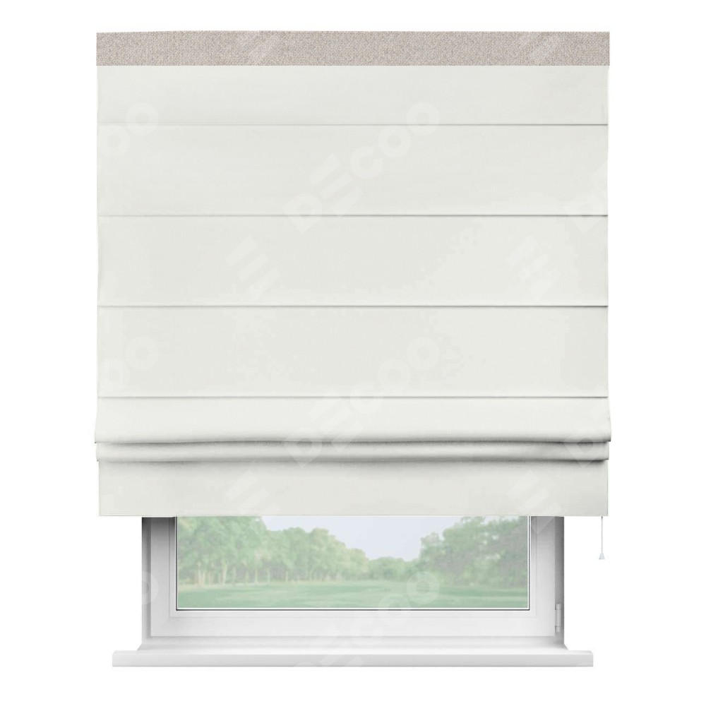 Римская штора «Кортин» для проема, лён димаут молочный с кантом Кинг