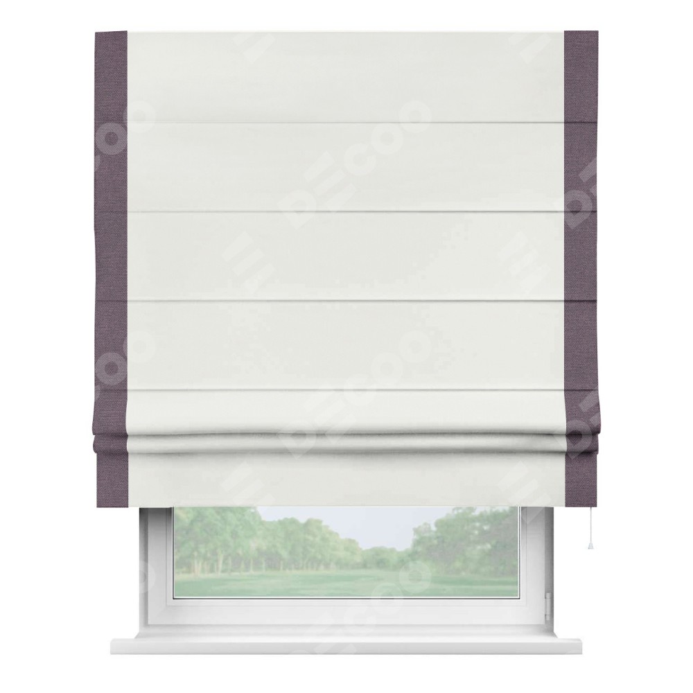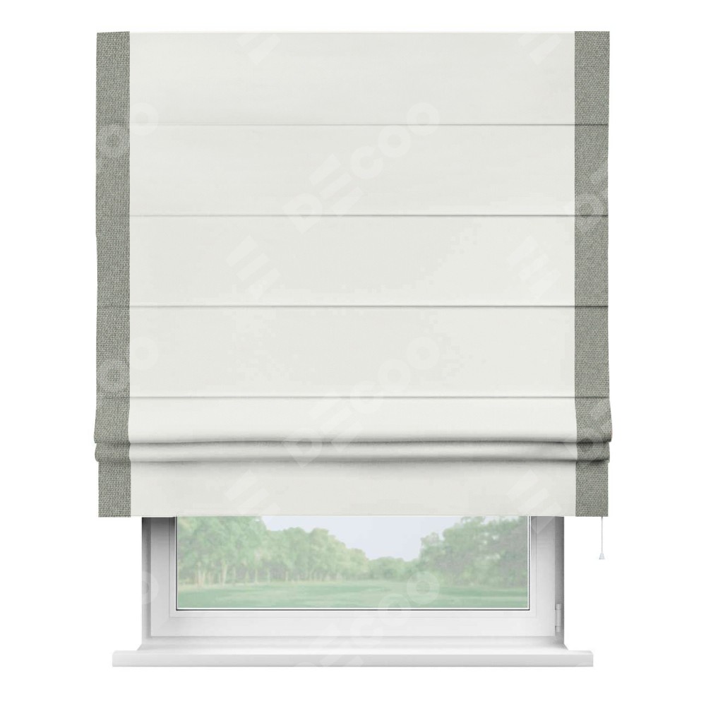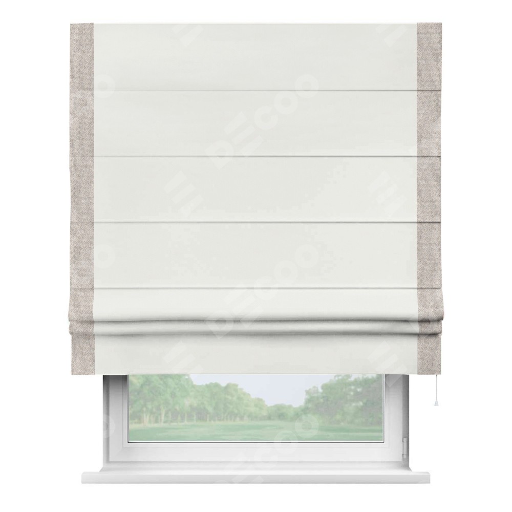 Римская штора «Кортин» для проема, лён димаут молочный с кантом Стрим Дуо