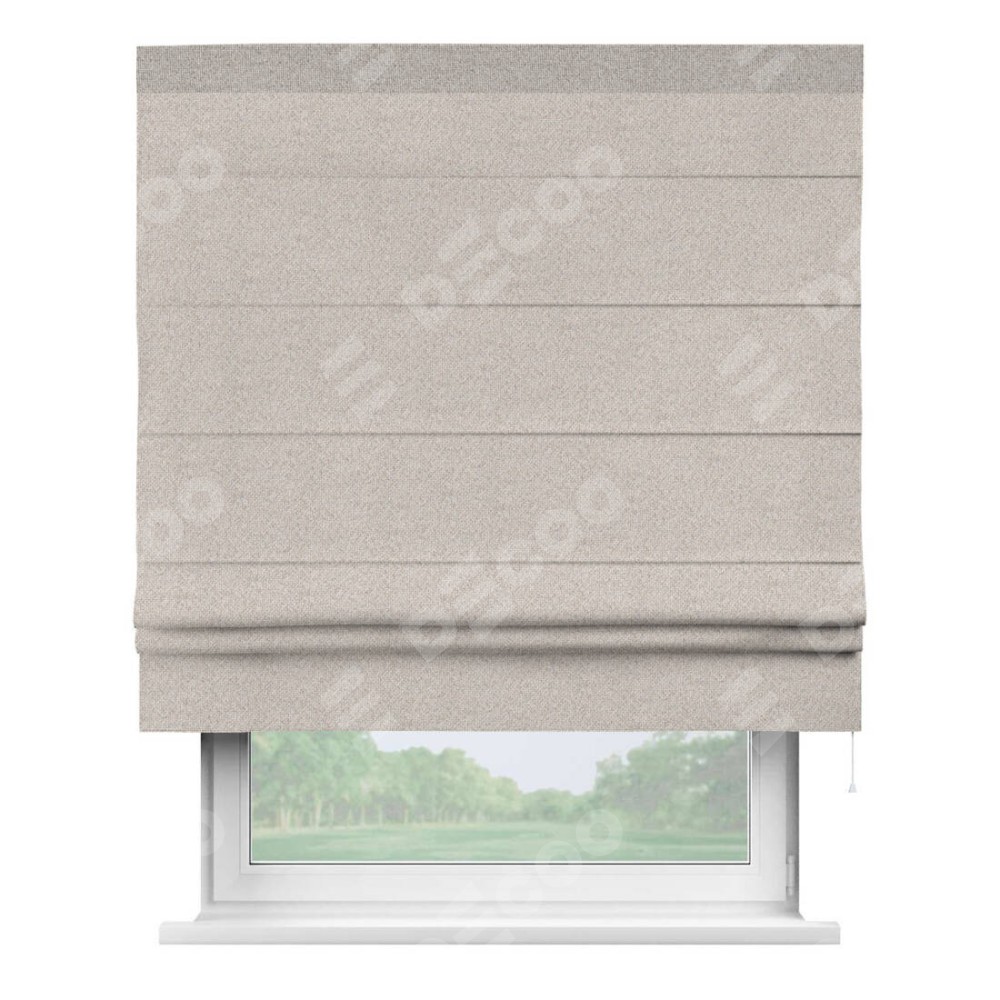 Классическая римская штора производителя «Cortin», пошита из ткани лён димаут бежевый, артикул: 01. Имеет универсальный механизм и подходит для монтажа: на потолок, на стену и в нишу.