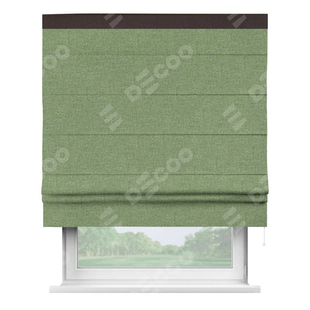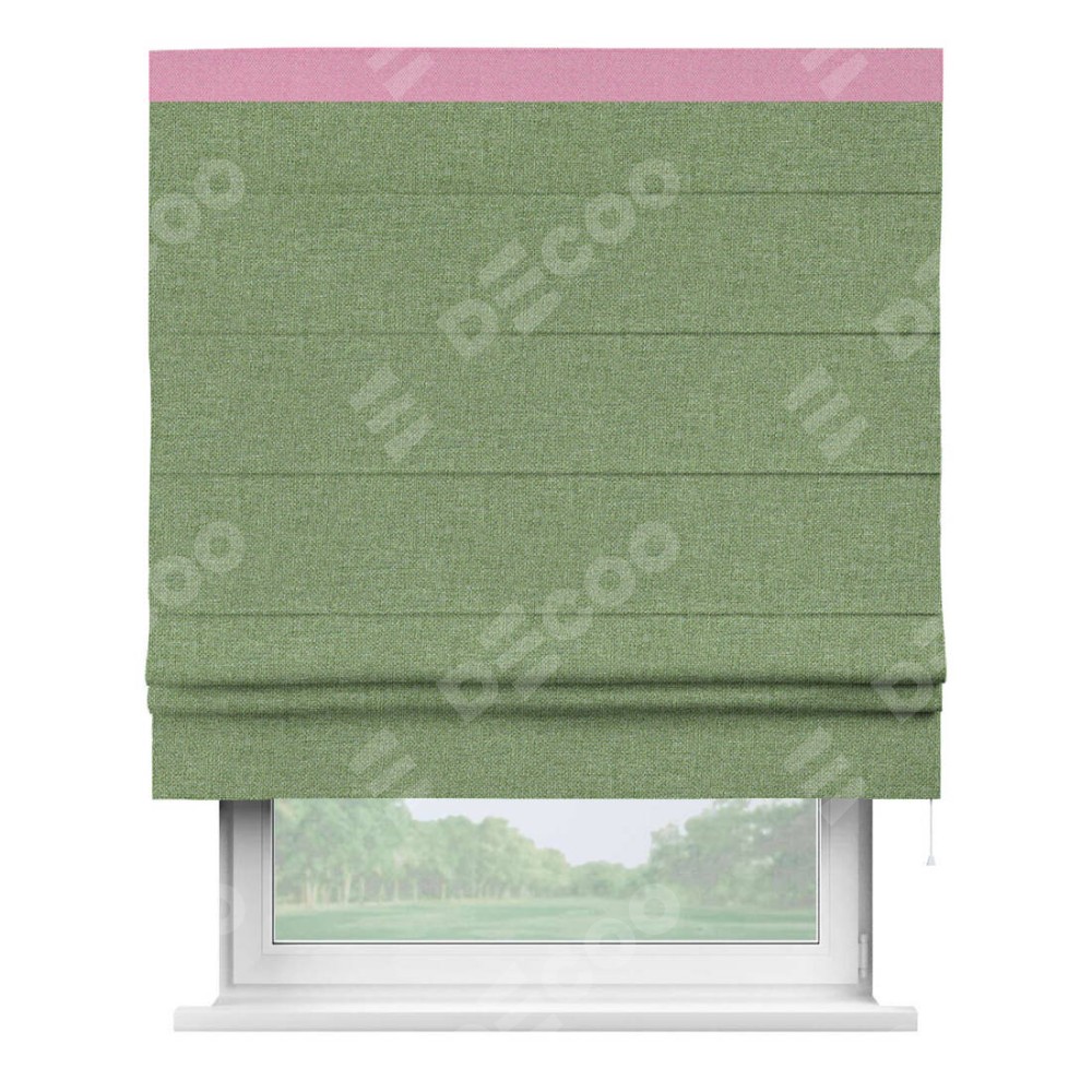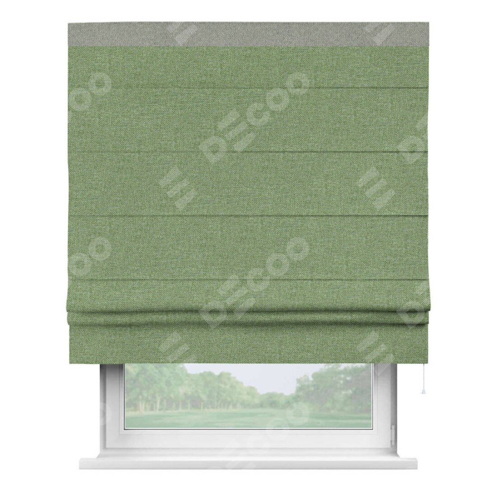 Римская штора «Cortin» для проёма, лён димаут светло-салатовый с кантом Кинг