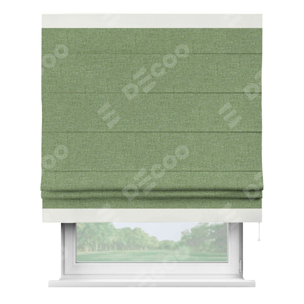 Римская штора «Cortin» для проёма, лён димаут светло-салатовый с кантом Горизонт