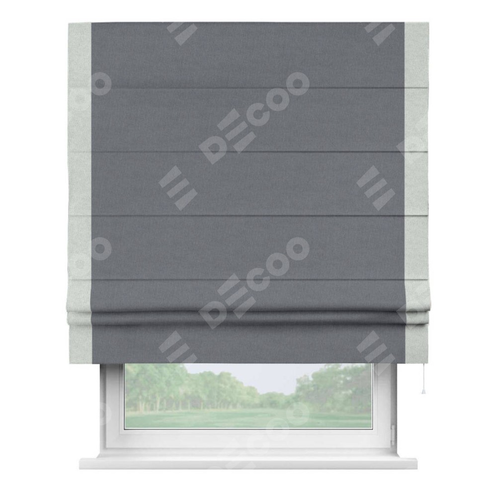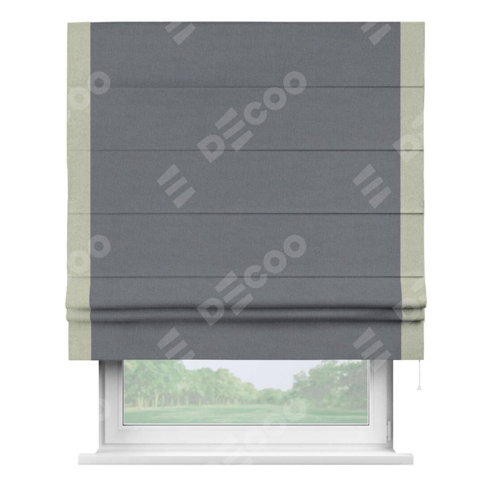 Классическая римская штора производителя «Cortin», пошита из ткани лён блэкаут тёмно-серый, артикул: 139663. Имеет универсальный механизм и подходит для монтажа: на потолок, на стену и в нишу.