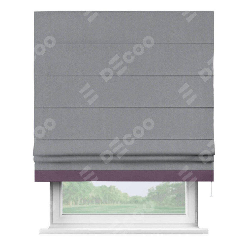 Римская штора «Кортин» для проема, блэкаут однотонный серый с кантом Джестер