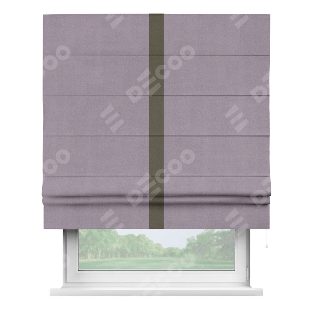 Римская штора «Кортин» для проёма, блэкаут однотонный лиловый с кантом Хайвэй