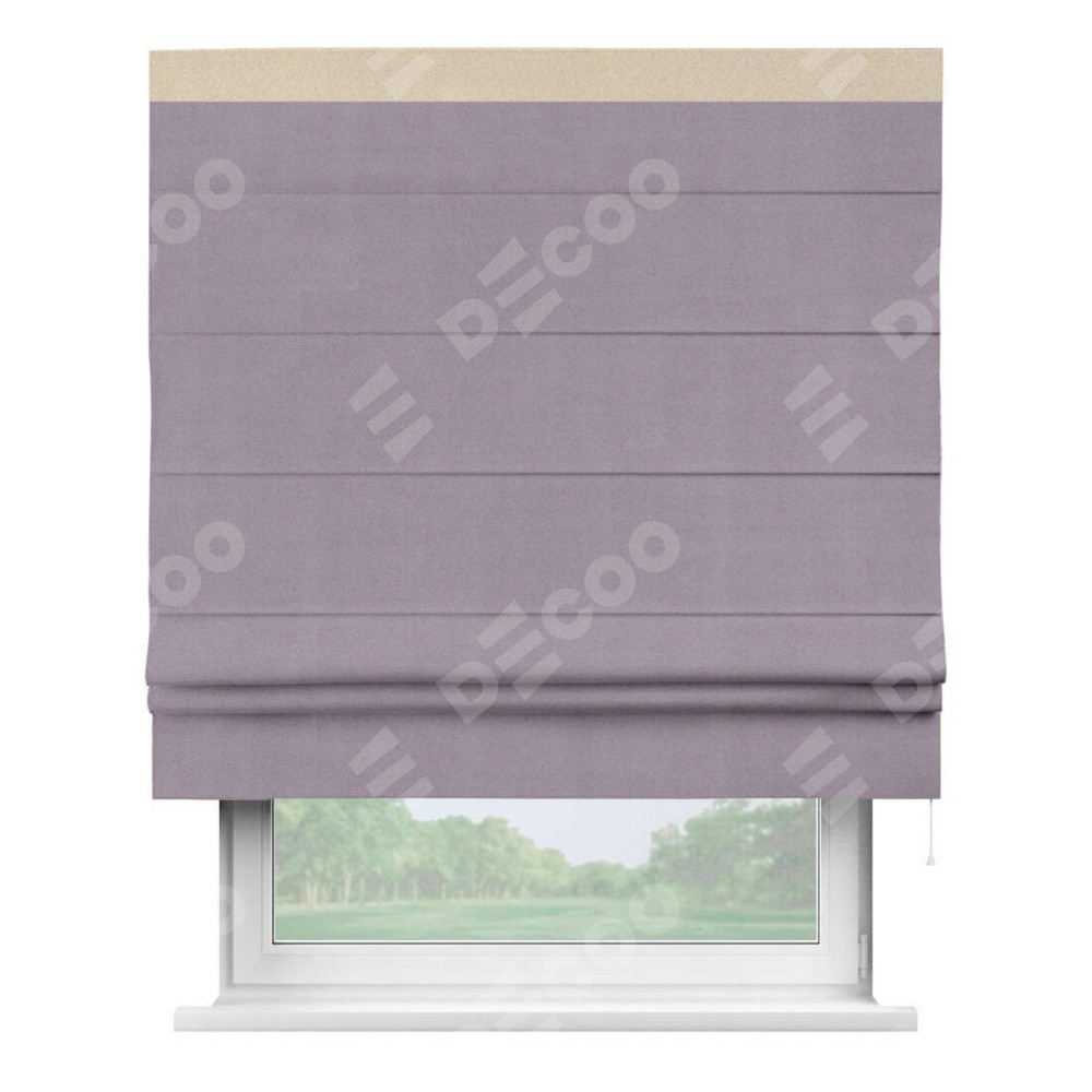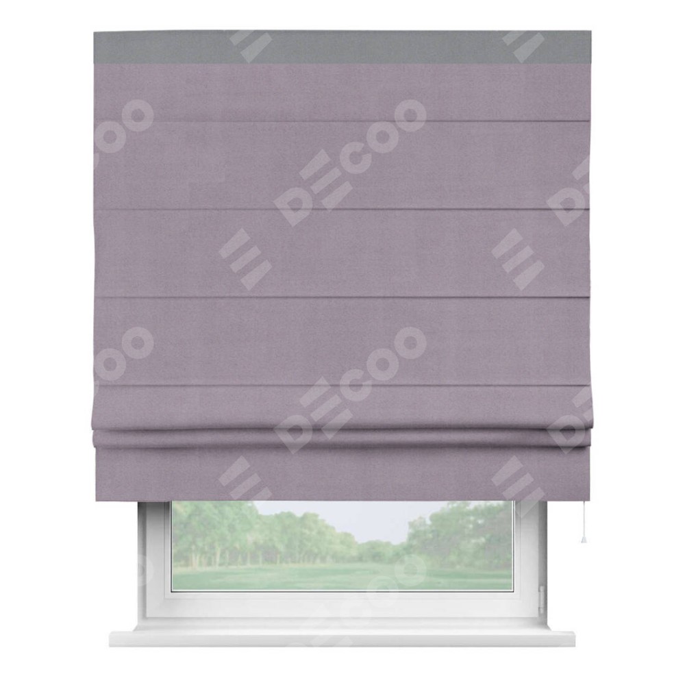 Римская штора «Кортин» для проёма, блэкаут однотонный лиловый с кантом Кинг
