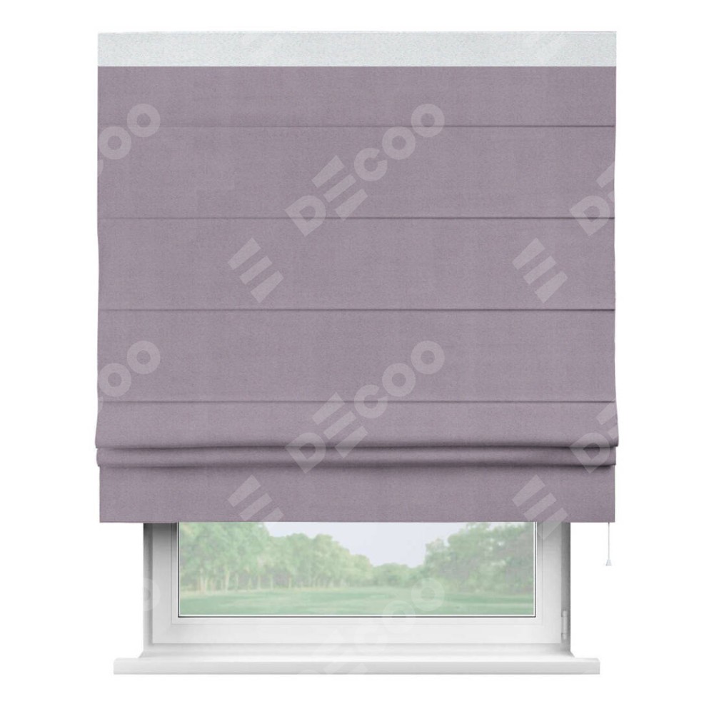 Классическая римская штора производителя «Cortin», пошита из ткани однотонный блэкаут лиловый, артикул: 91577. Имеет универсальный механизм и подходит для монтажа: на потолок, на стену и в нишу.