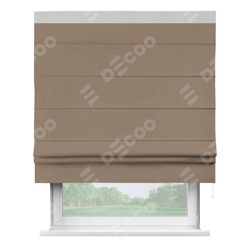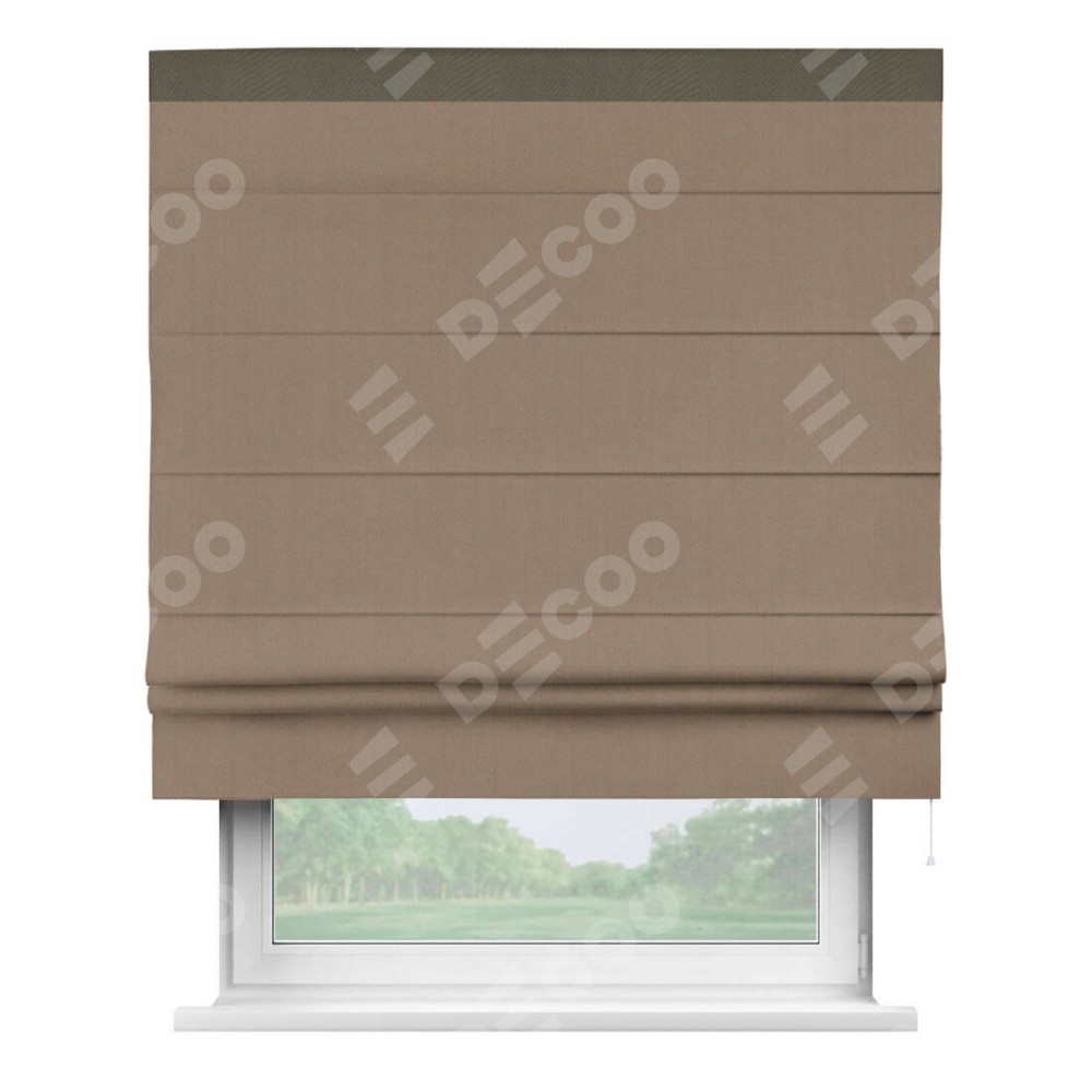 Римская штора «Cortin» для проёма, ткань блэкаут однотонный кофейно-бежевый с кантом Кинг