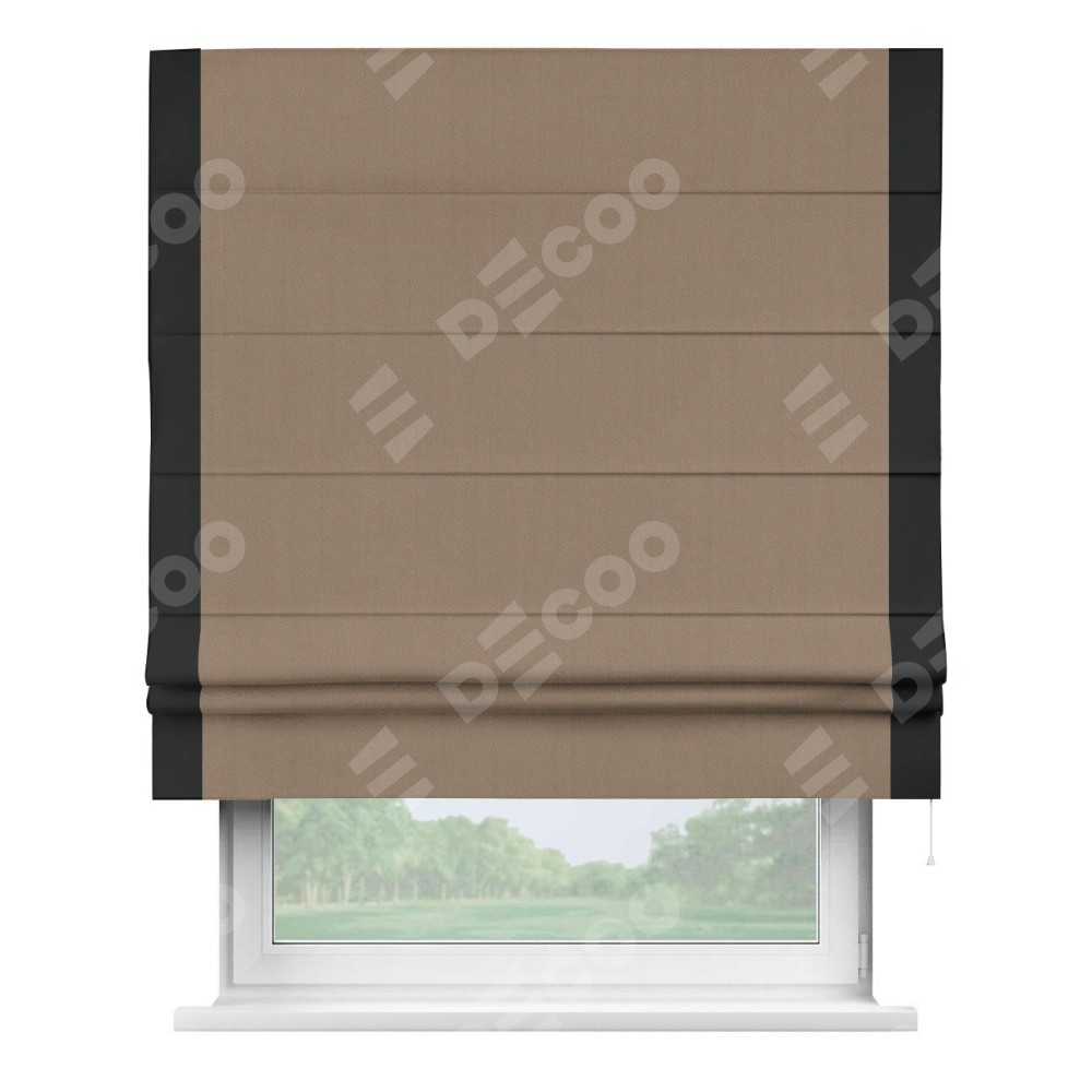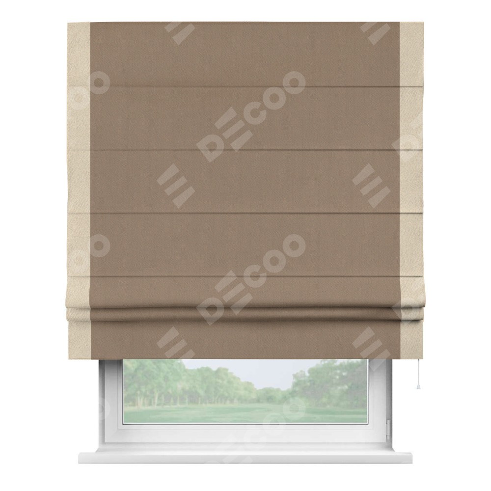 Римская штора «Cortin» для проёма, ткань блэкаут однотонный кофейно-бежевый с кантом Стрим Дуо