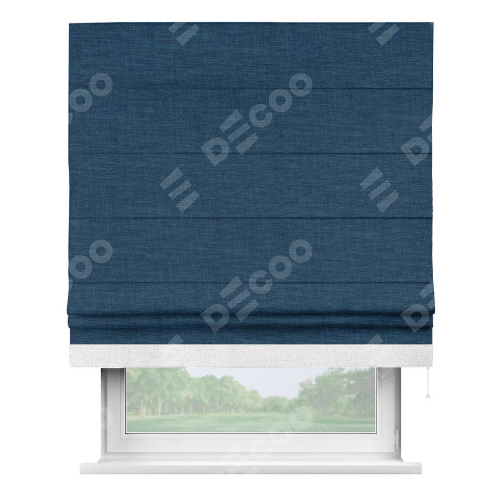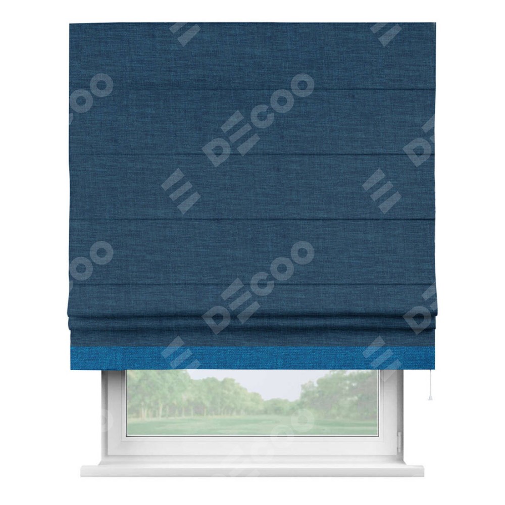 Римская штора «Кортин» для проёма, лён синий, с кантом Джестер