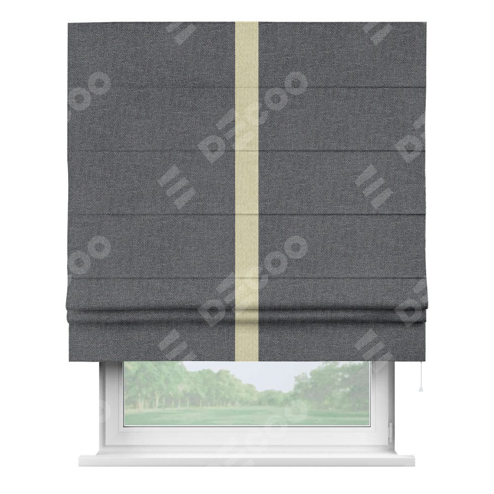 Римская штора «Кортин» для проёма, лён димаут графит с кантом Хайвэй
