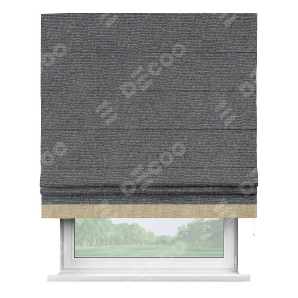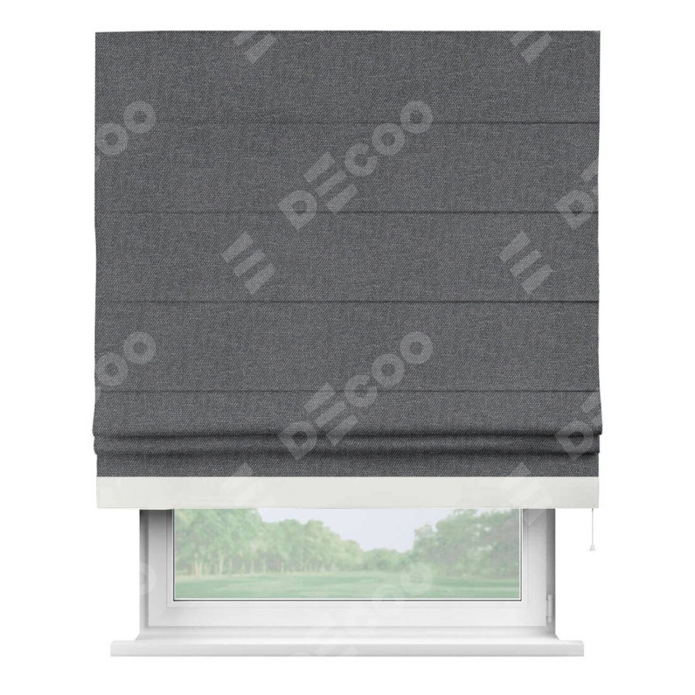 Классическая римская штора производителя «Cortin», пошита из ткани лён димаут графит, артикул: 140644. Имеет универсальный механизм и подходит для монтажа: на потолок, на стену и в нишу.