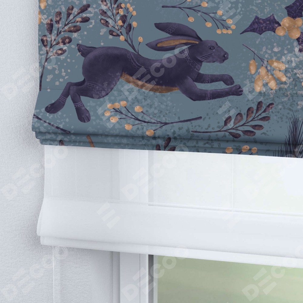 Двойная римская штора «День-ночь» от производителя Cortin предназначена для использования в проёмах. Эта штора уникальна тем, что состоит из двух полотен. На лицевой стороне находится дарк арт зайцы (артикул:), обеспечивающий эффективное затемнение. В комплект также входит вторая ткань — легкий белый тюль (артикул: V-01), который добавляет изящества и легкости оформлению окна. Кроме того, доступны и другие разновидности ткани тюль, выбор которых доступен по ссылке .