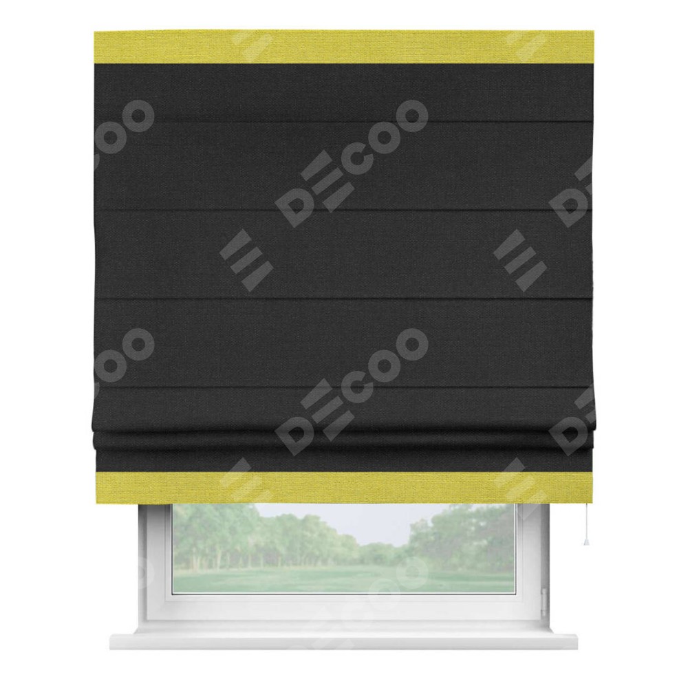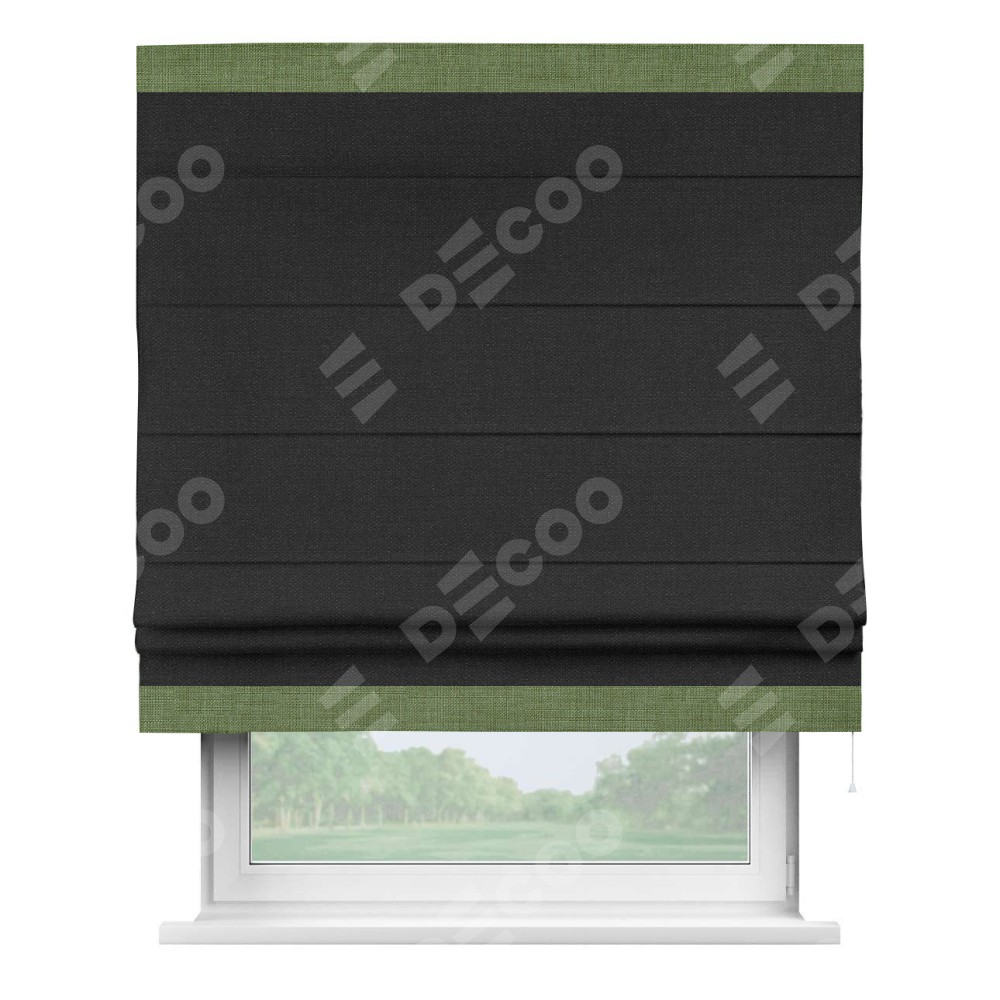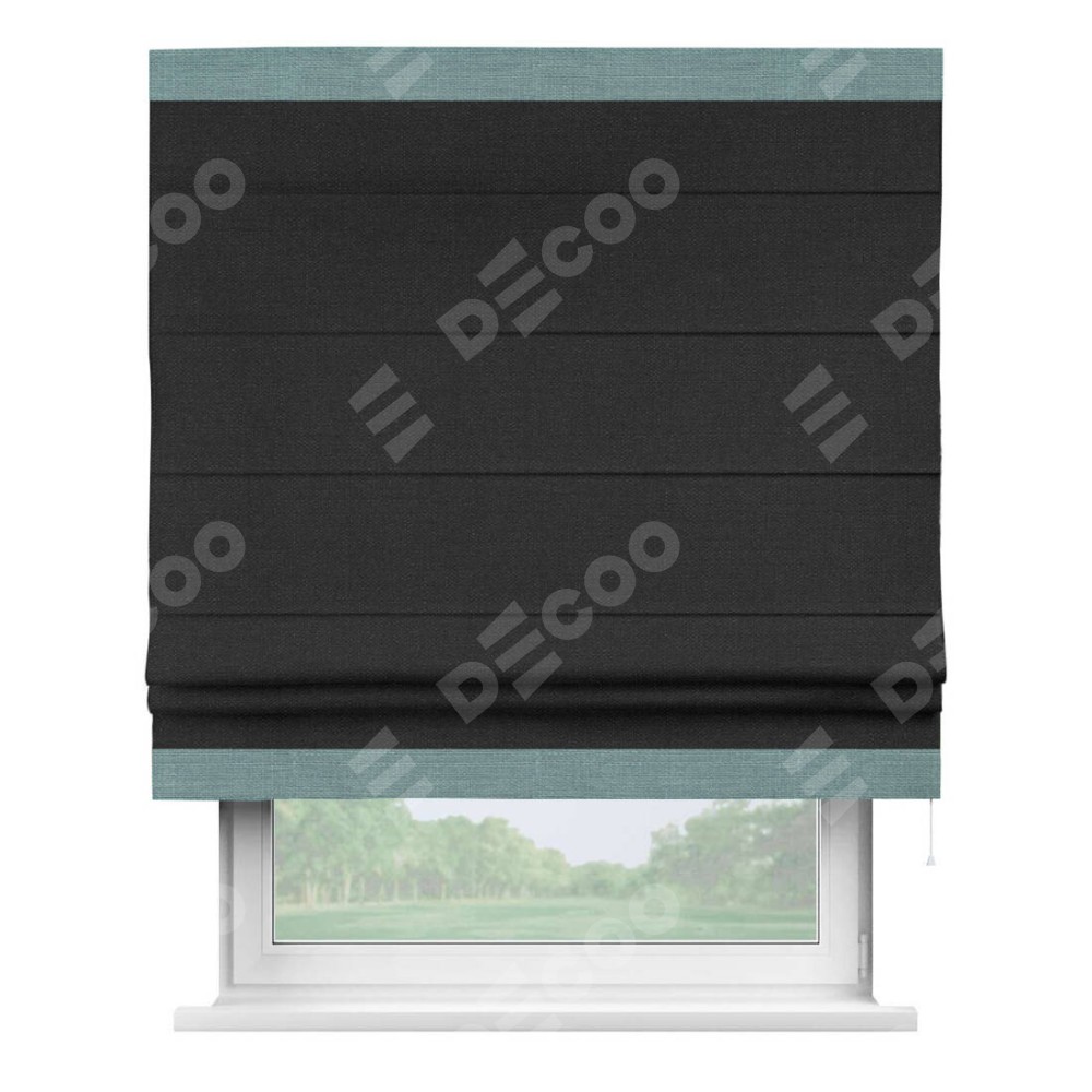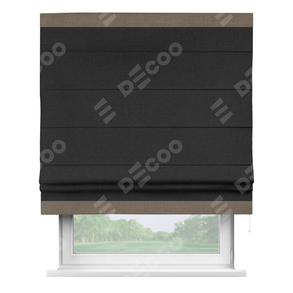Римская штора «Кортин» для проёма, лён чёрный, с кантом Горизонт
