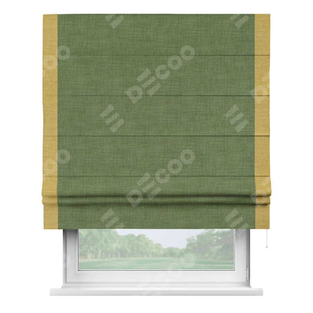 Римская штора «Кортин» для проёма, лён зелёный, с кантом Стрим Дуо