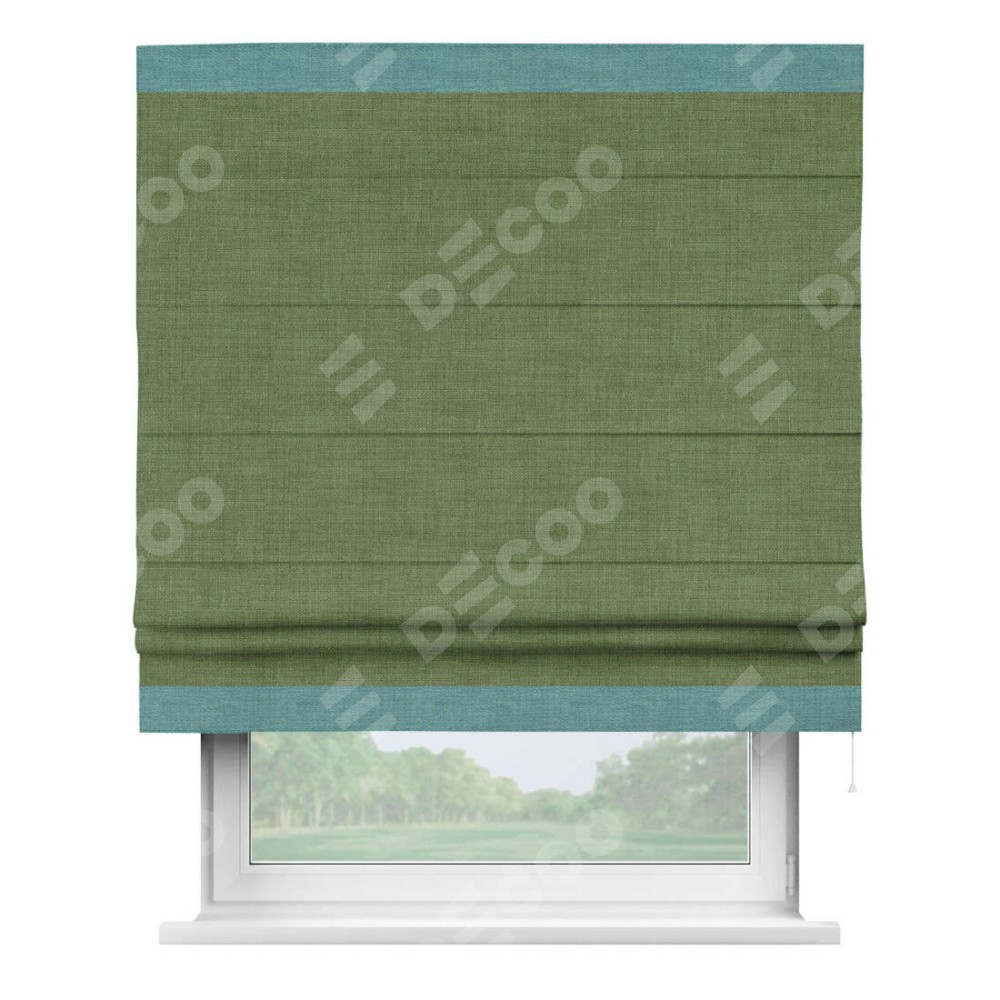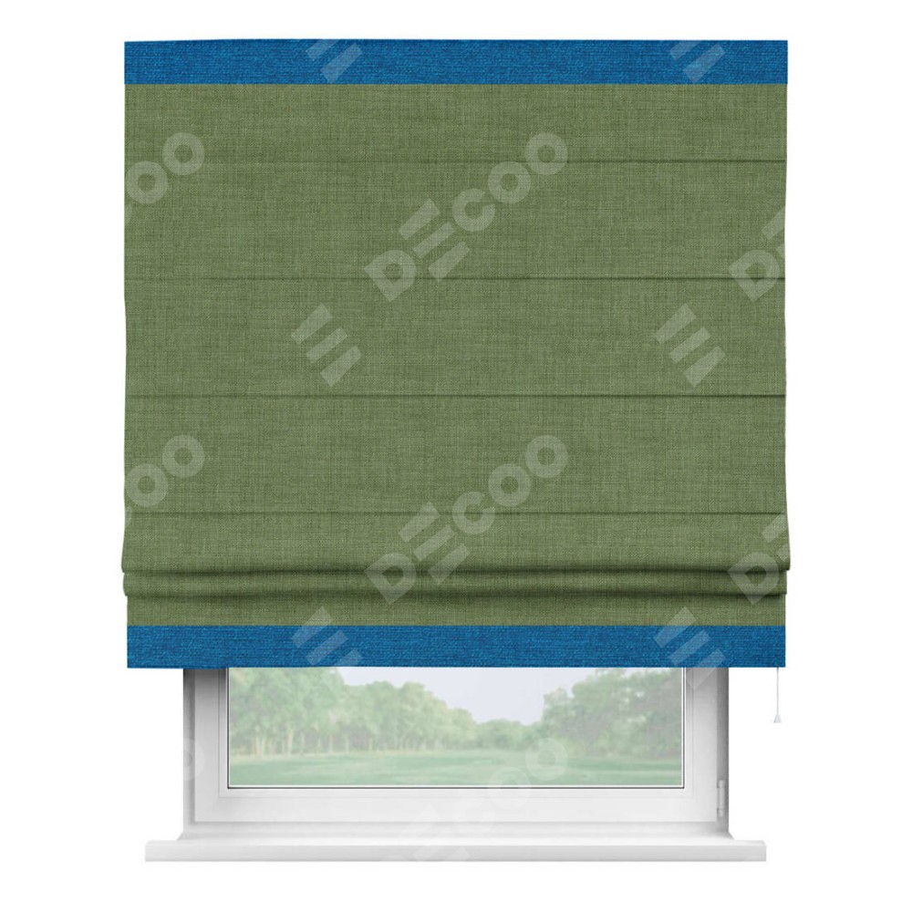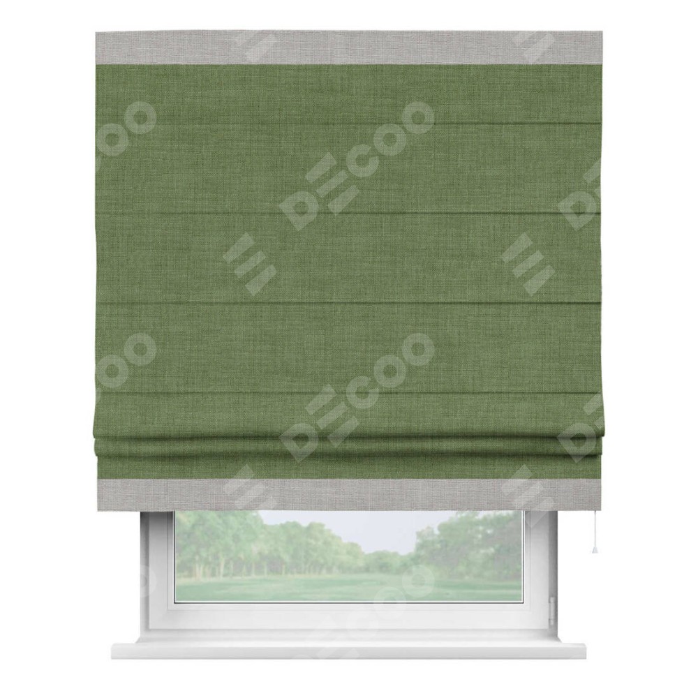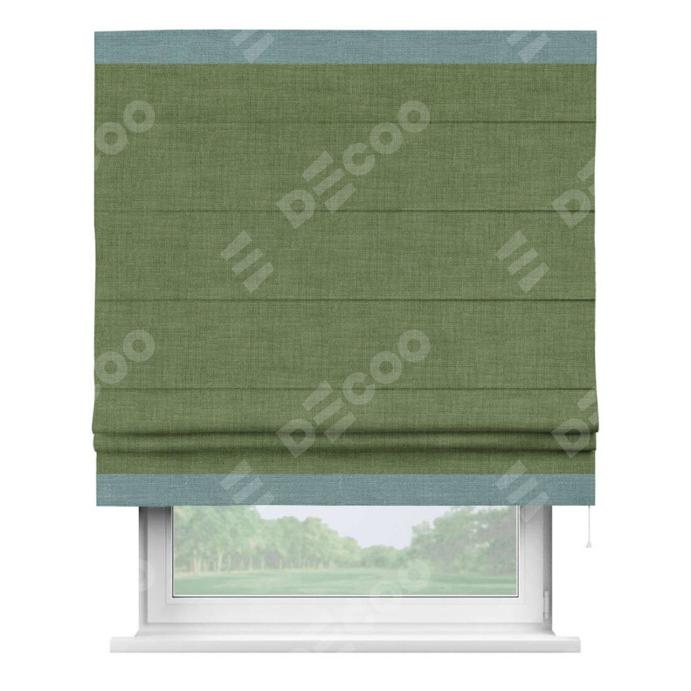 Римская штора «Кортин» для проёма, лён зелёный, с кантом Горизонт
